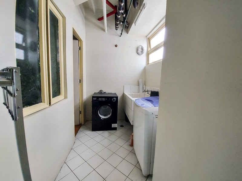 Separate utility room with sharp washing machine, American Home dryer, maid's room and en-suite shower room