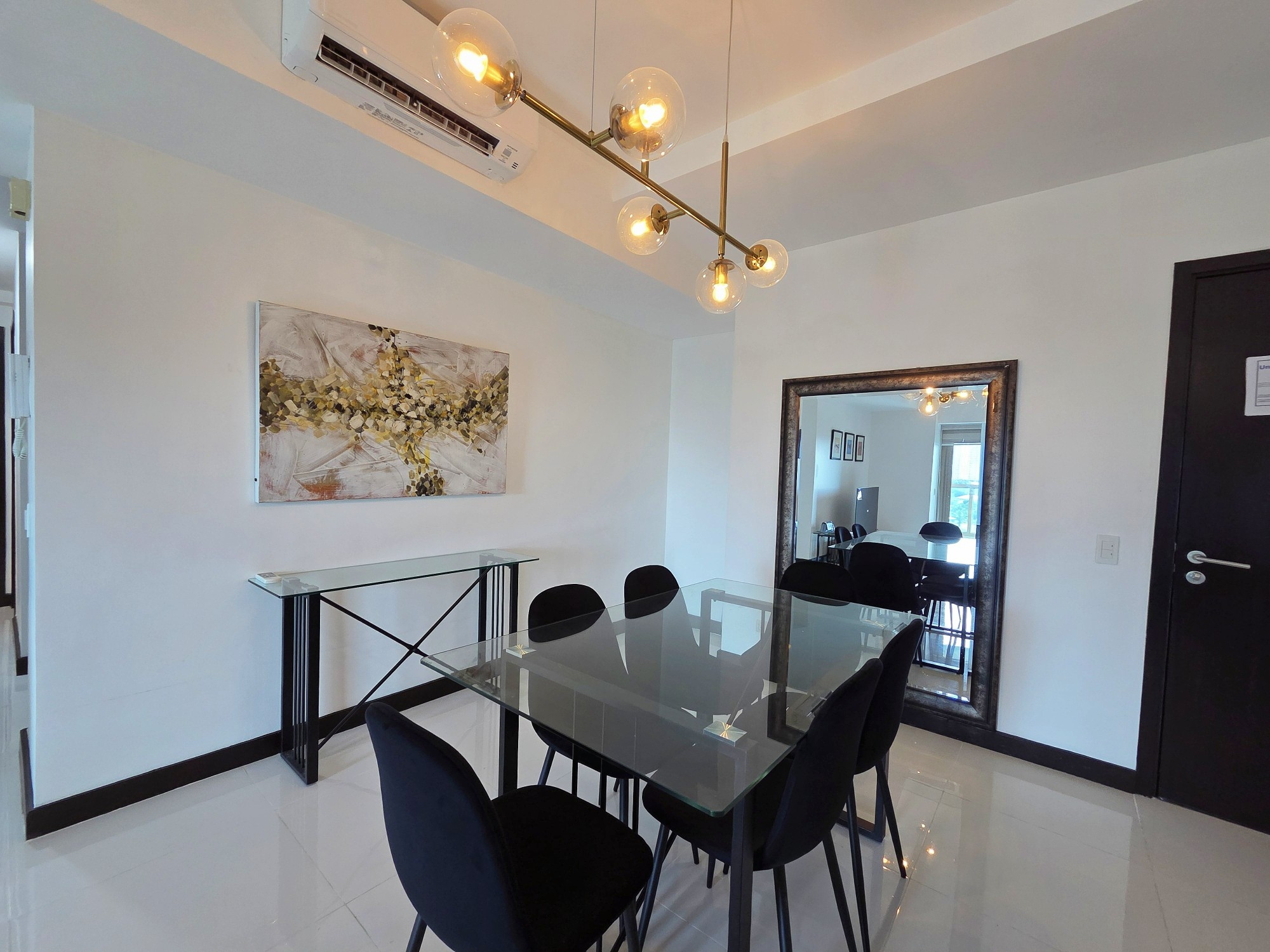 Bright modern, well furnished apartment for rent in the Manila Tower at The Residences at Greenbelt, conveniently located across the road from the iconic Greenbelt malls and entertainment complex.
