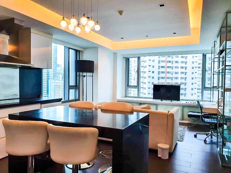 High end one bedroom apartment that is both fully furnished and fully automated for rent at Makati Place by Alphaland at the eastern end of Ayala Avenue