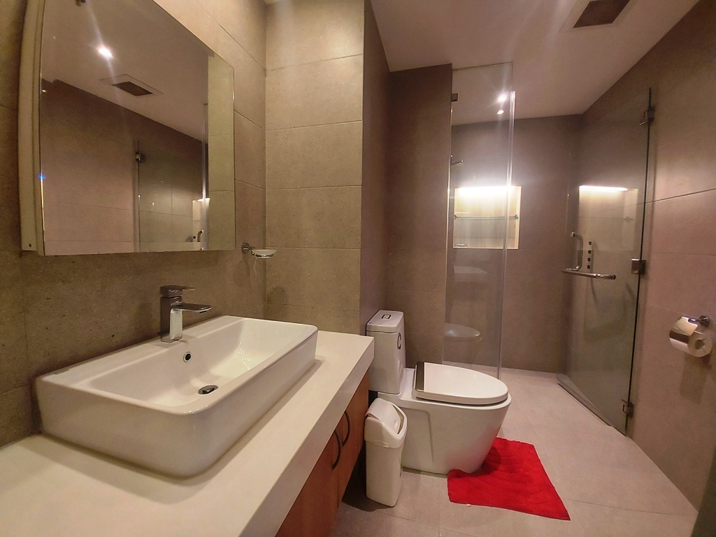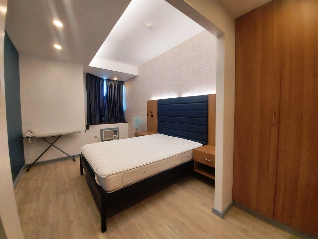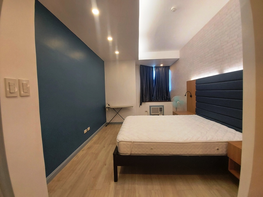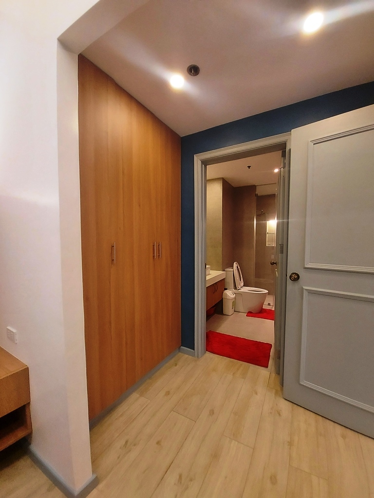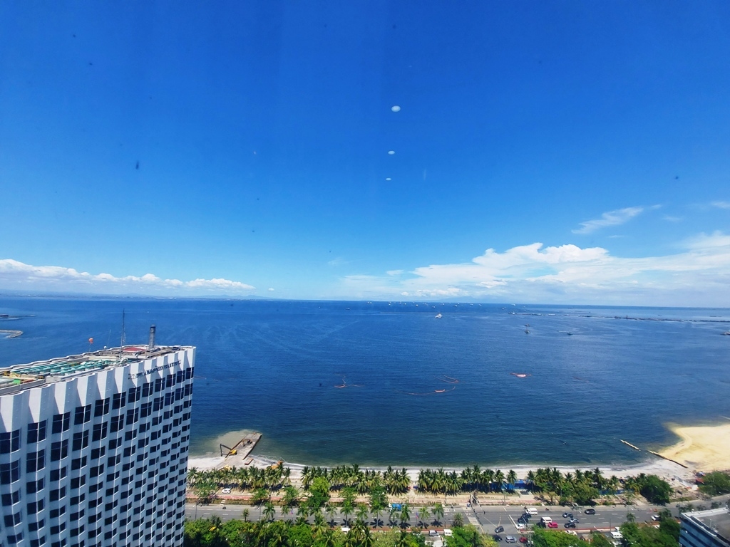 Bedroom also has an overlooking view of Manila Bay and is furnished with queen bed, bedside table and en-suite bathroom