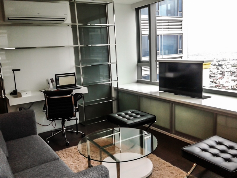 Very impressive fully furnished and fully automated one bedroom apartment for rent at Makati Place by Alphaland facing North East