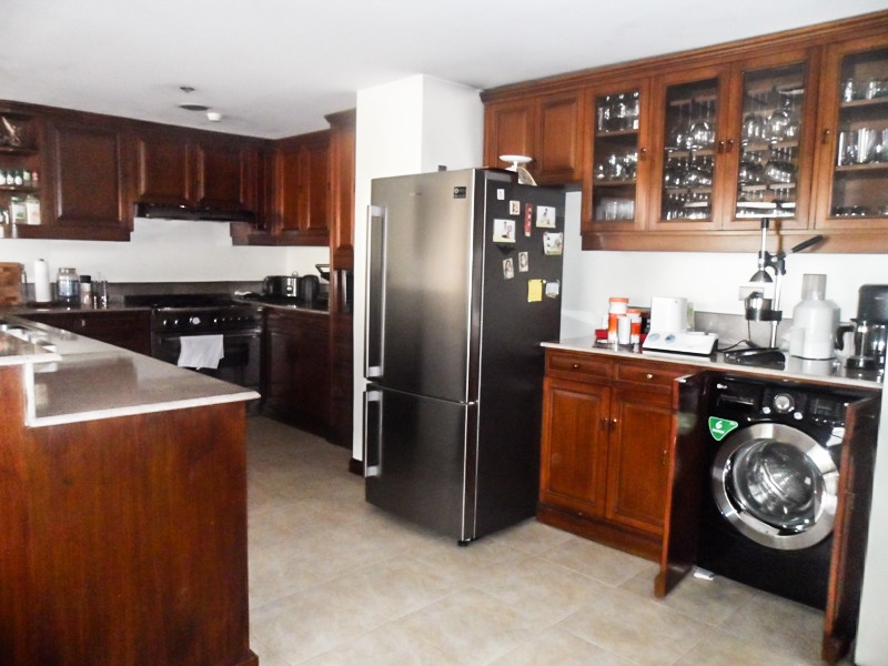 Separate fitted kitchen equipped with all major appliances such as refrigerator, gas range, microwave oven and cutlery and crockery