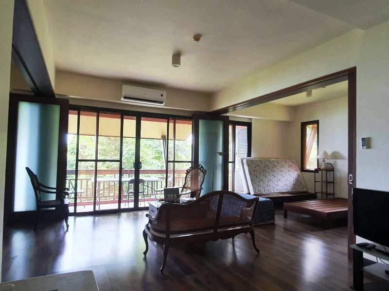 The condo's balcony is accessible from the living room and both bedrooms and provides views over the garden towards the West Philippine Sea