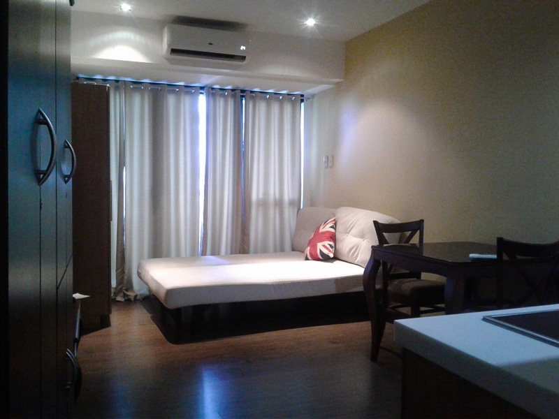 Modern studio condominium for sale at the fashionable Knightsbridge Residences just off Makati Avenue in the heart of Manila