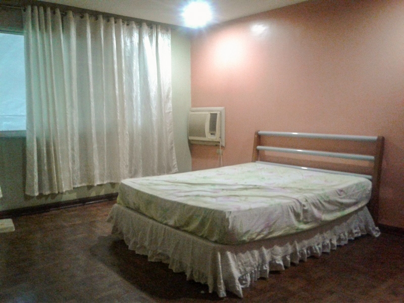 Master bedroom is furnished with a Queen size bed, fitted wardrobe, bedside tables with lamps, en-suite bathroom and window type air-conditioning
