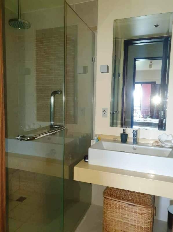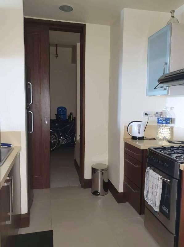 The condo's balcony is accessible from the living room and both bedrooms and provides views of the Bay and the West Philippine Sea