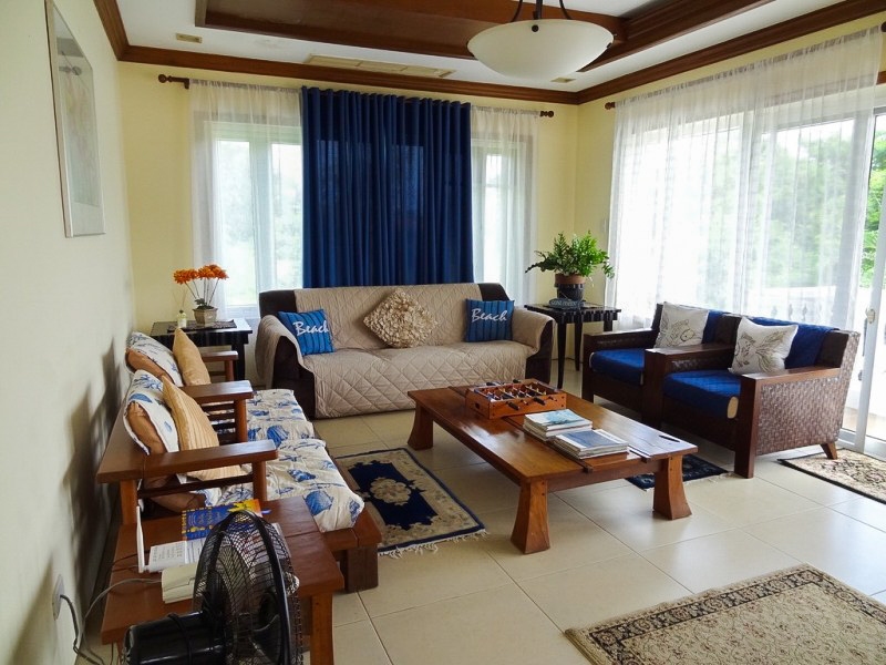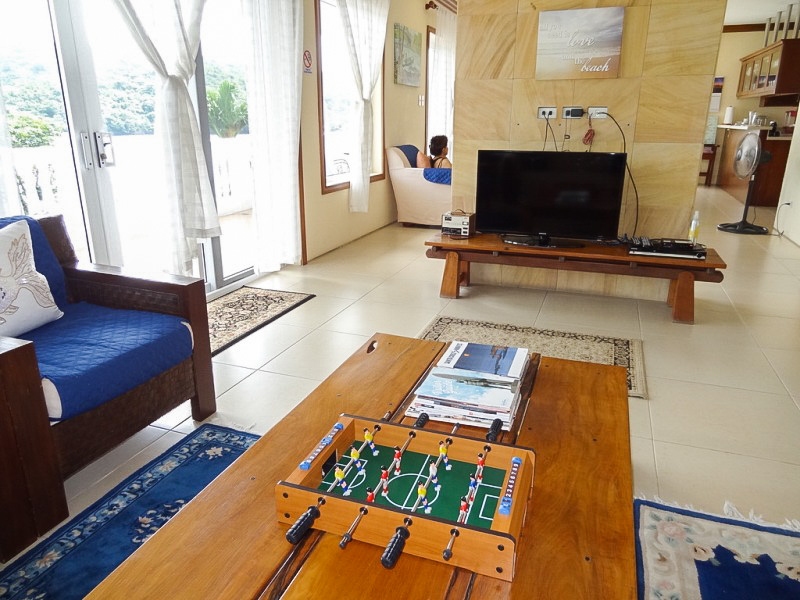 Furnished large dining and living rooms with air-conditioning. Large windows with screened sliding doors and large balcony overlooking the bay and out to the South China sea