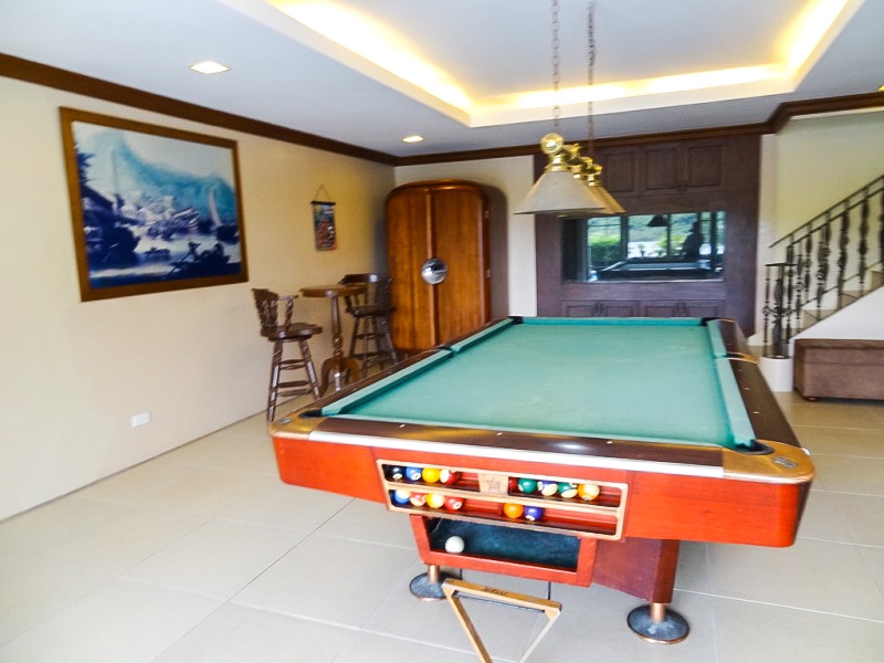 Air-conditioned games room with billiards facing infinity pool and overlooking the bay