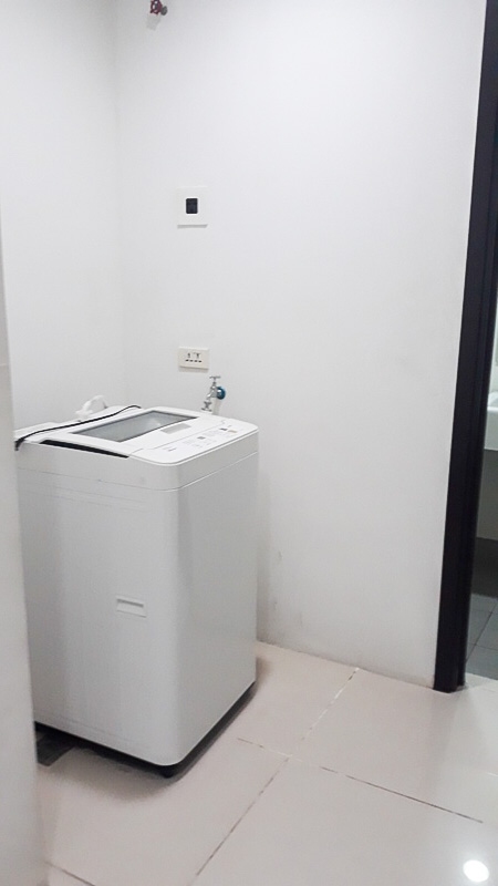 Utiity area houses a washing machine
