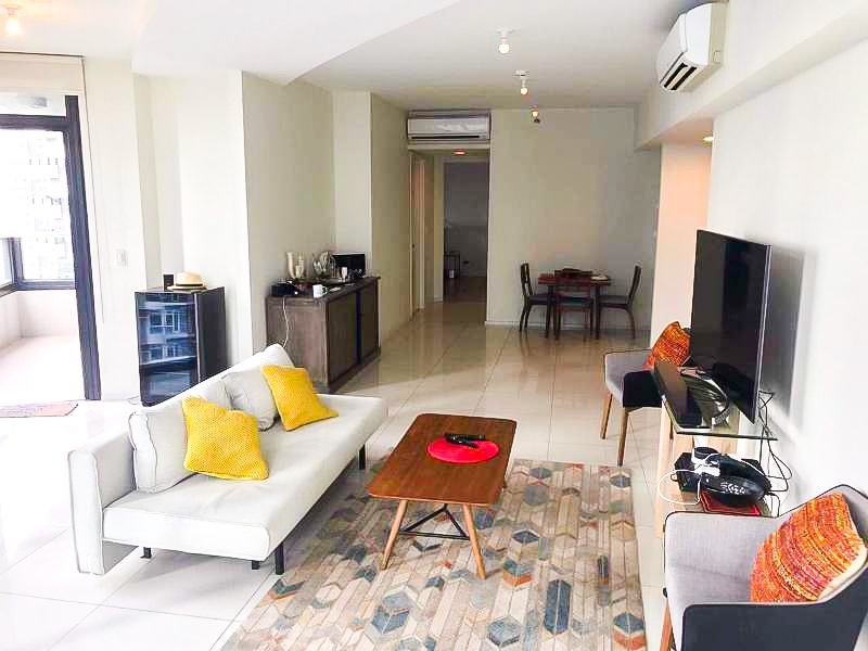 This elegantly furnished two bedroom condominium unit is for rent in the iconic and LEED approved Arya Residences, conveniently located along McKinley Parkway corner 7th Avenue, Bonifacio Global City, Taguig