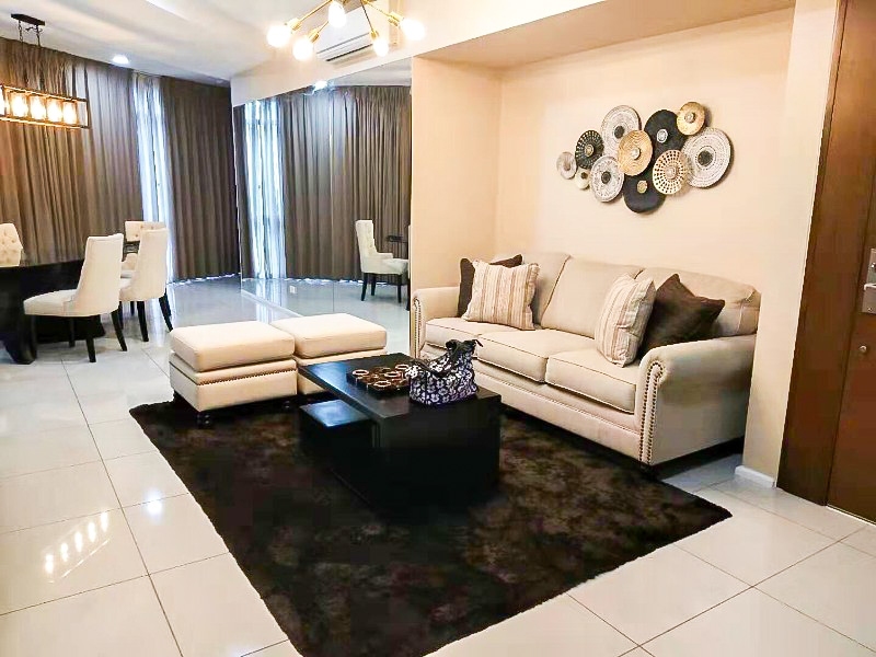 This bright two bedroom condominium is for rent in the iconic and LEED approved Arya Residences, conveniently located along McKinley Parkway corner 7th Avenue, Bonifacio Global City, Taguig