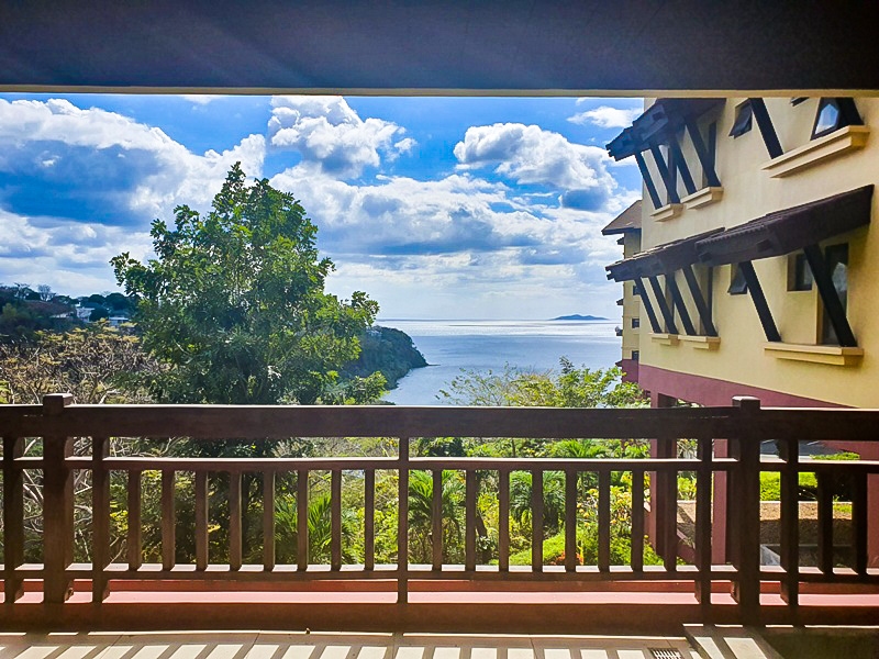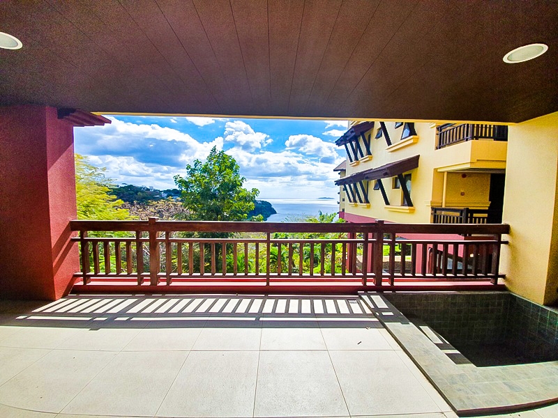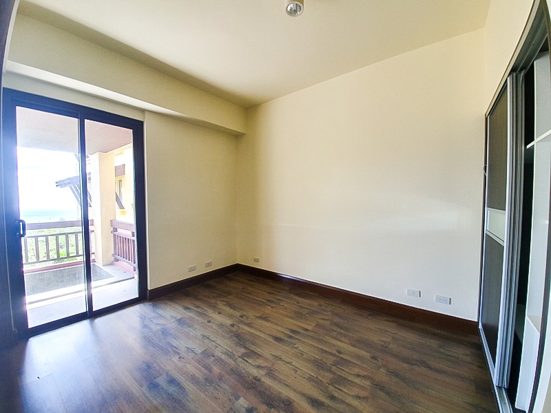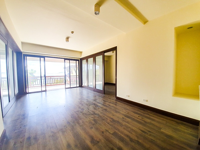 The condo's expansive balcony is accessible from the living room and both bedrooms and provides partial views of the Terrazas cove and the West Philippine Sea