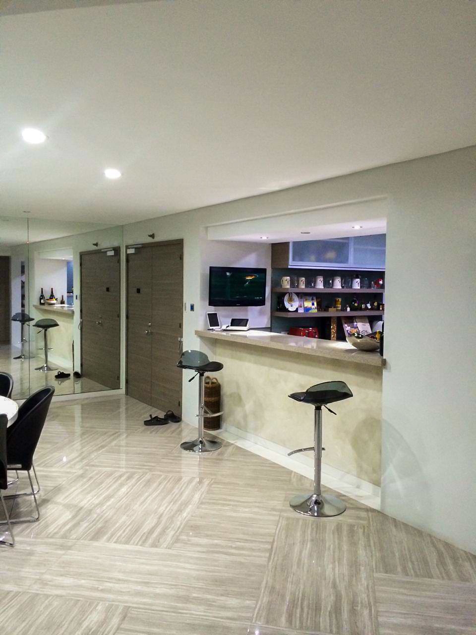 Modern elegantly furnished three bedroom condominium remodeled into a two bedroom apartment for sale in the prestigious Ritz Tower, in the up-market Apartment Ridge area of Makati, directly across from the Ayala Center and Glorietta Mall