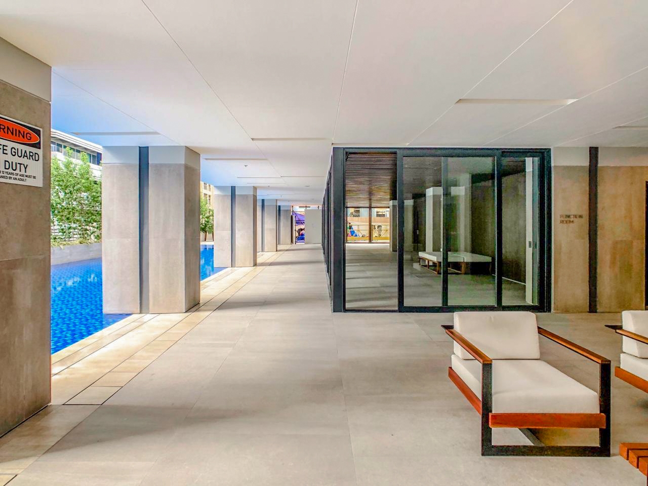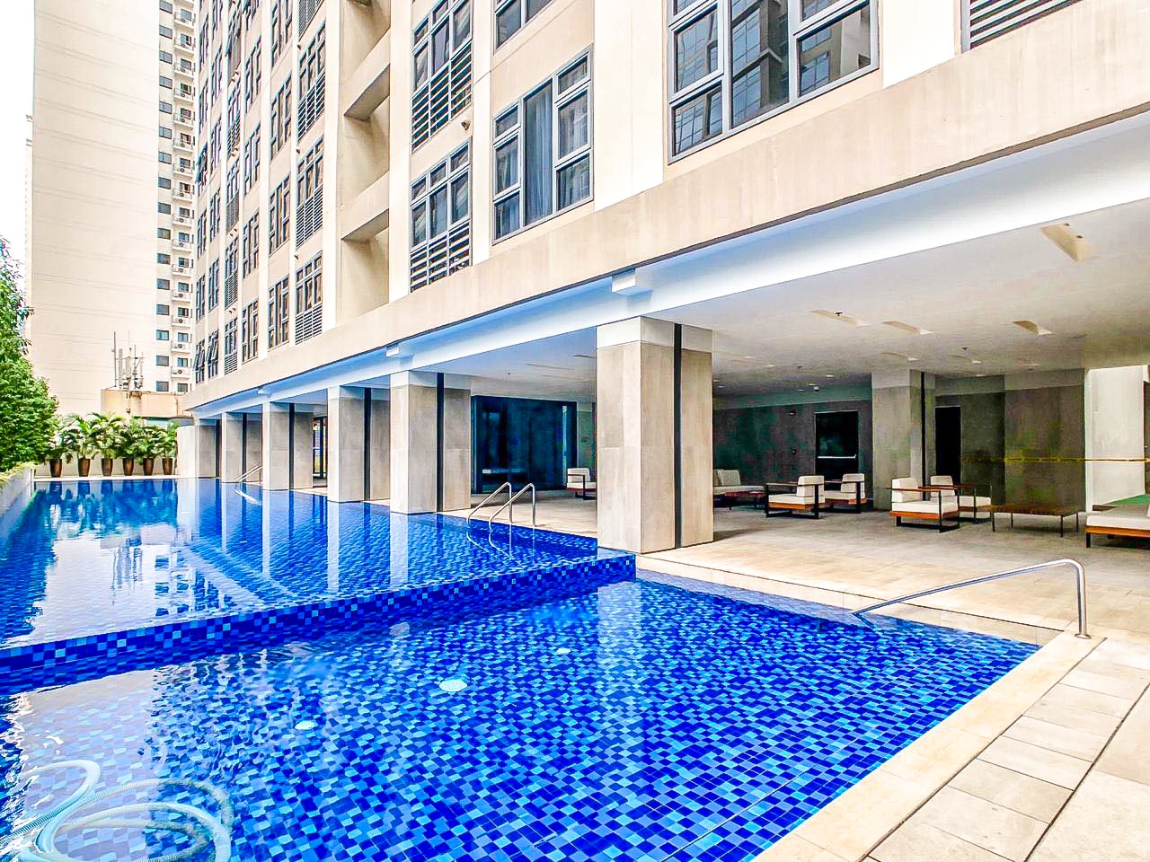 Amenities include an adult swimming pool and kiddie pool, retail spaces, a family lounge, function room and fitness lounge equipped with male and female locker rooms, shower area, and changing room.