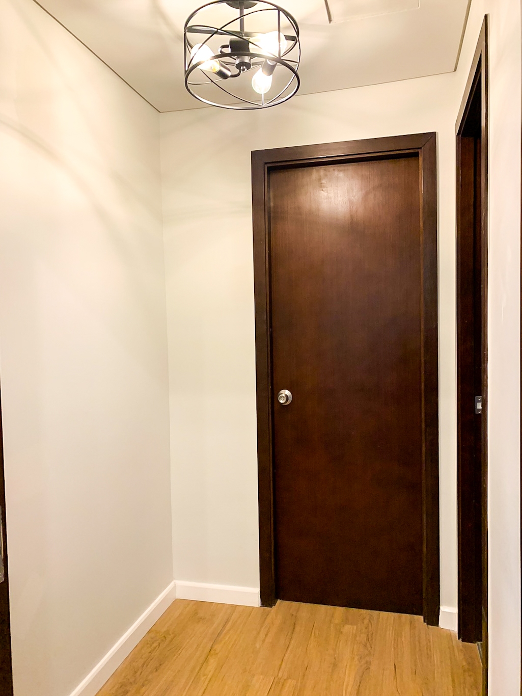 Separate utility area housing a washing machine and dryer