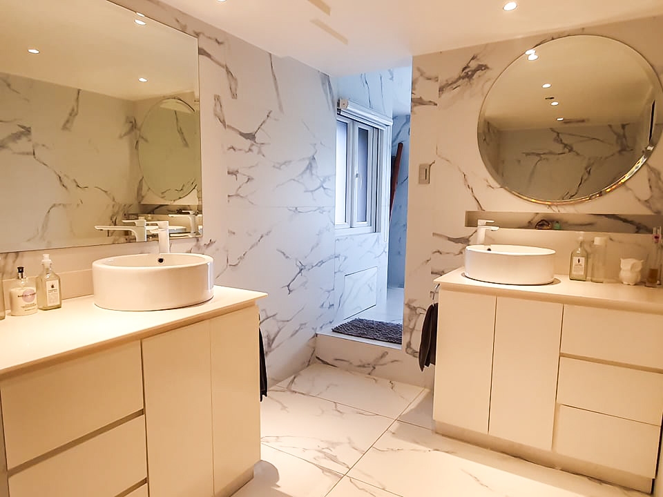 Stunning en-suite marble bathroom comes with a separate shower, his and hers sinks and stand alone bathtub with majestic views over Urdanetta Village