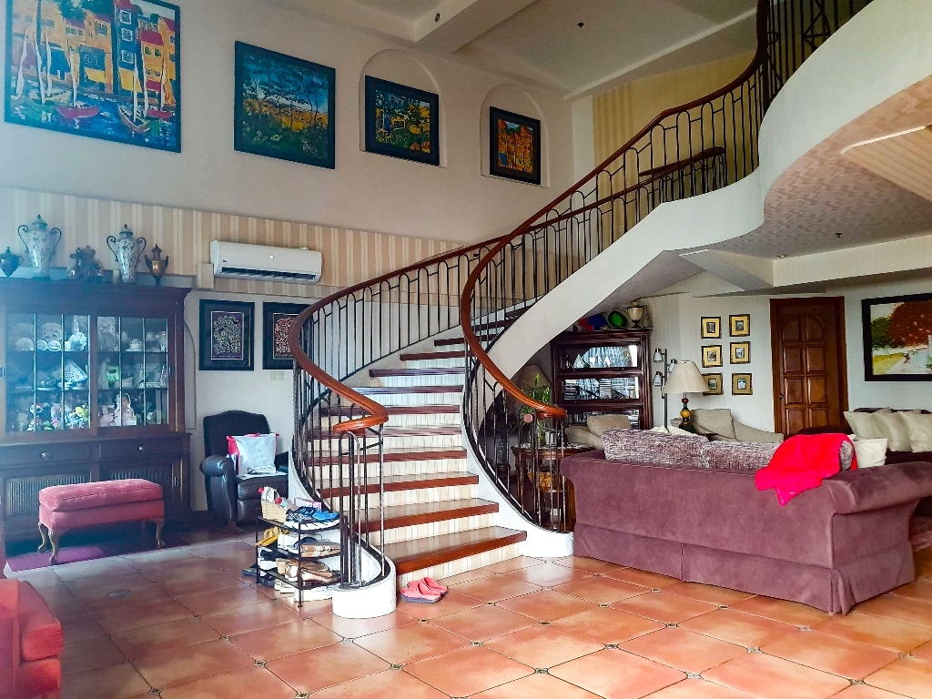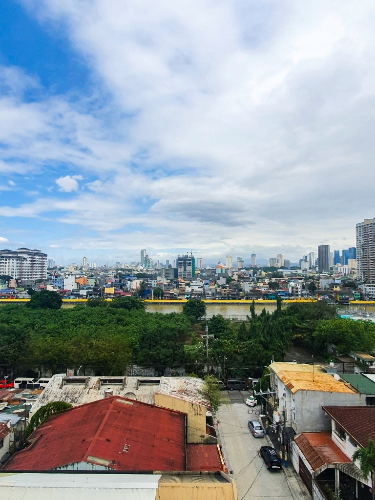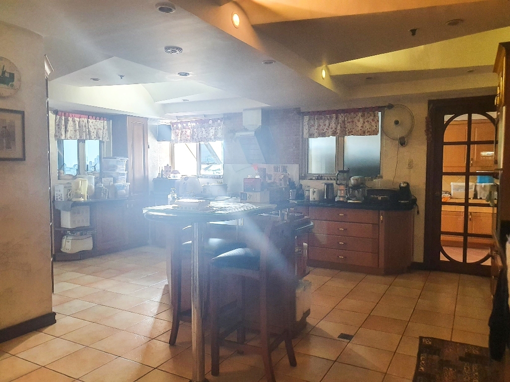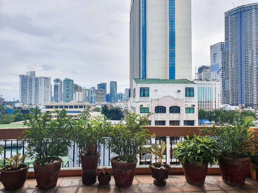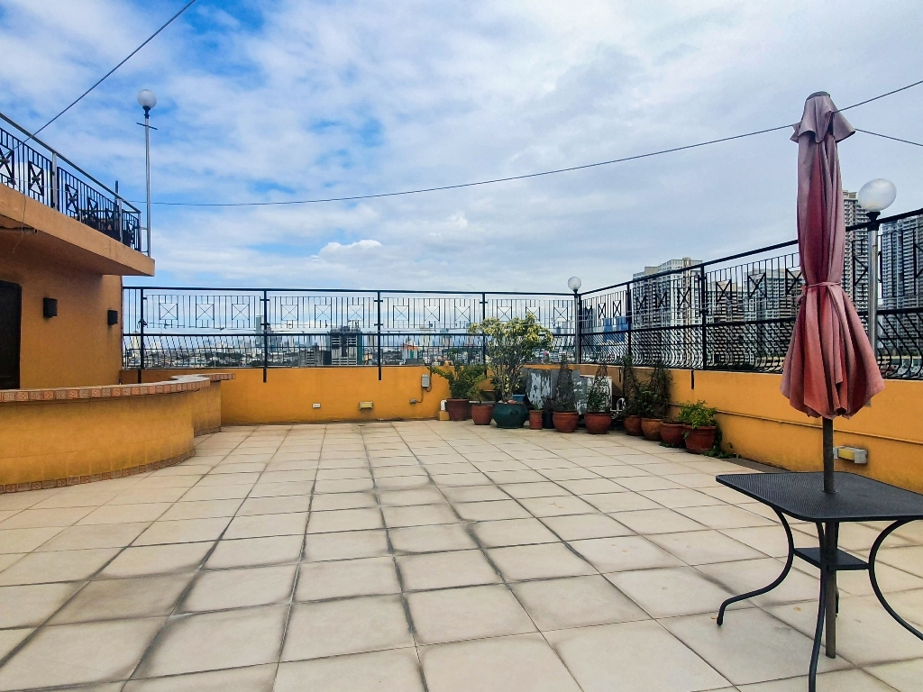 Large roof deck with swimming pool, kitchen, outside bar, male and female toilets, storage and views across the Pasig River
