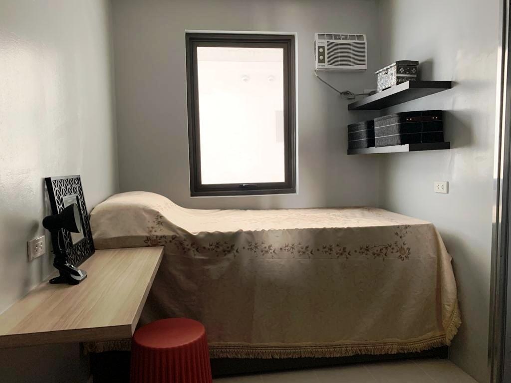 Second bedroom has a singe bed, study table and wall type air conditioning