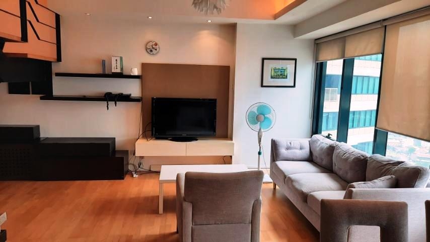 Tastefully decorated two bedroom loft type apartment for rent in the East Tower of the popular One Rockwell, conveniently located in Rockwell Drive, Makati City