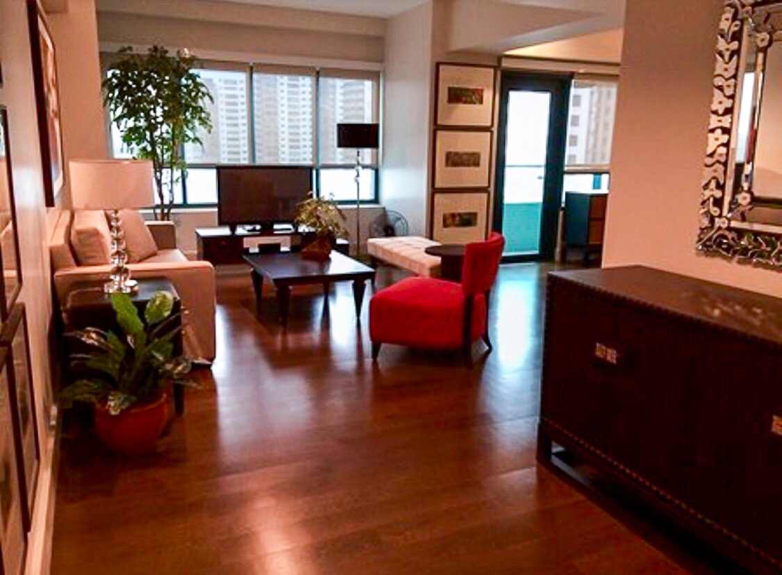 Elegantly furnished two bedroom condominium for rent in Edades Tower in the up-market Rockwell residential complex, close to all the business and entertainment activity in Makati City