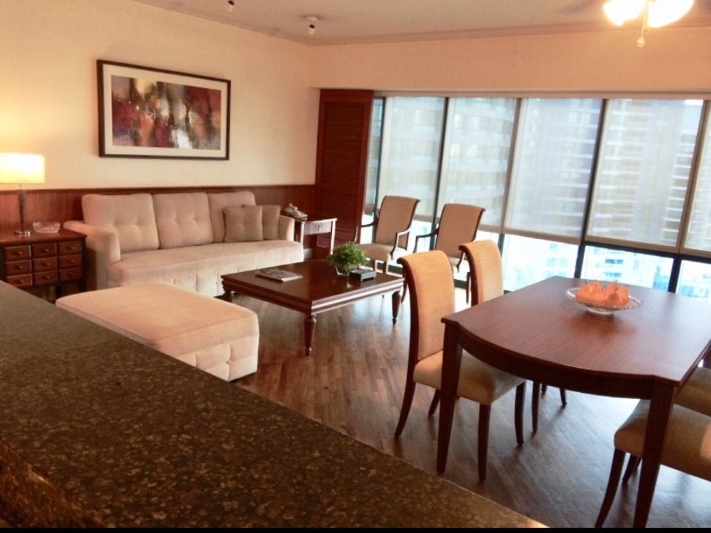 This spacious one bedroom condo is for rent in Hidalgo Place, West Block, Rockwell, Makati City with a complete view of Rockwell Club Garden and amenity Area