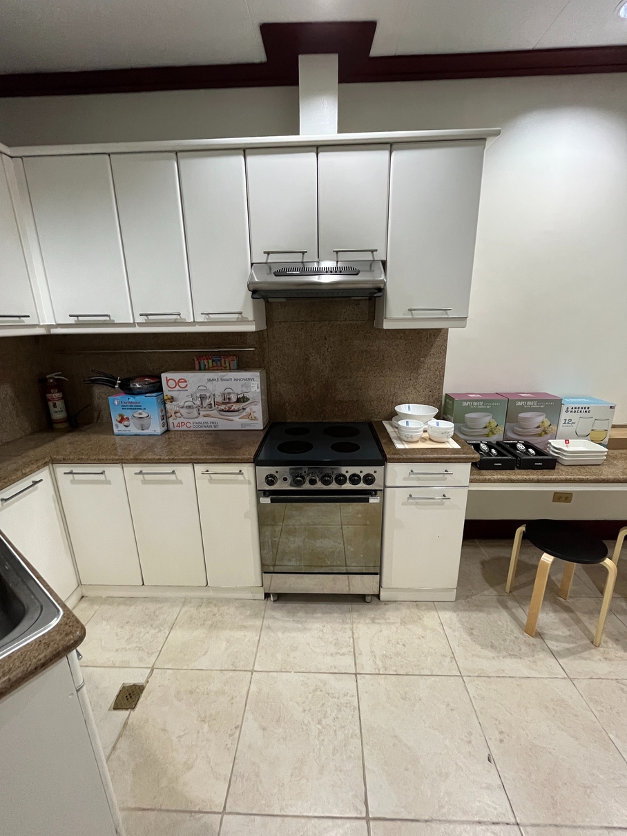 Equipped with major appliances including refrigerator, electric stove, range hood, new microwave oven, cookware china, glass and cutlery