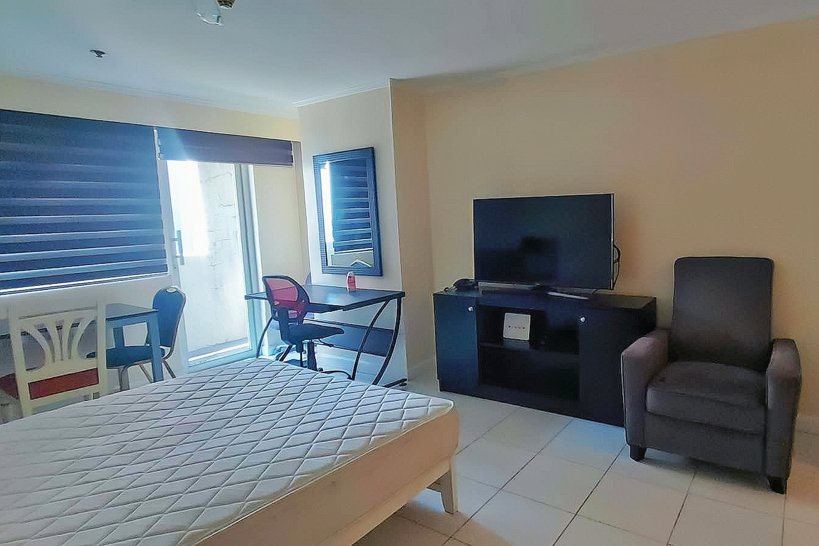 Tiled flooring throughout, modern blinds and split-type inverter air-conditioning