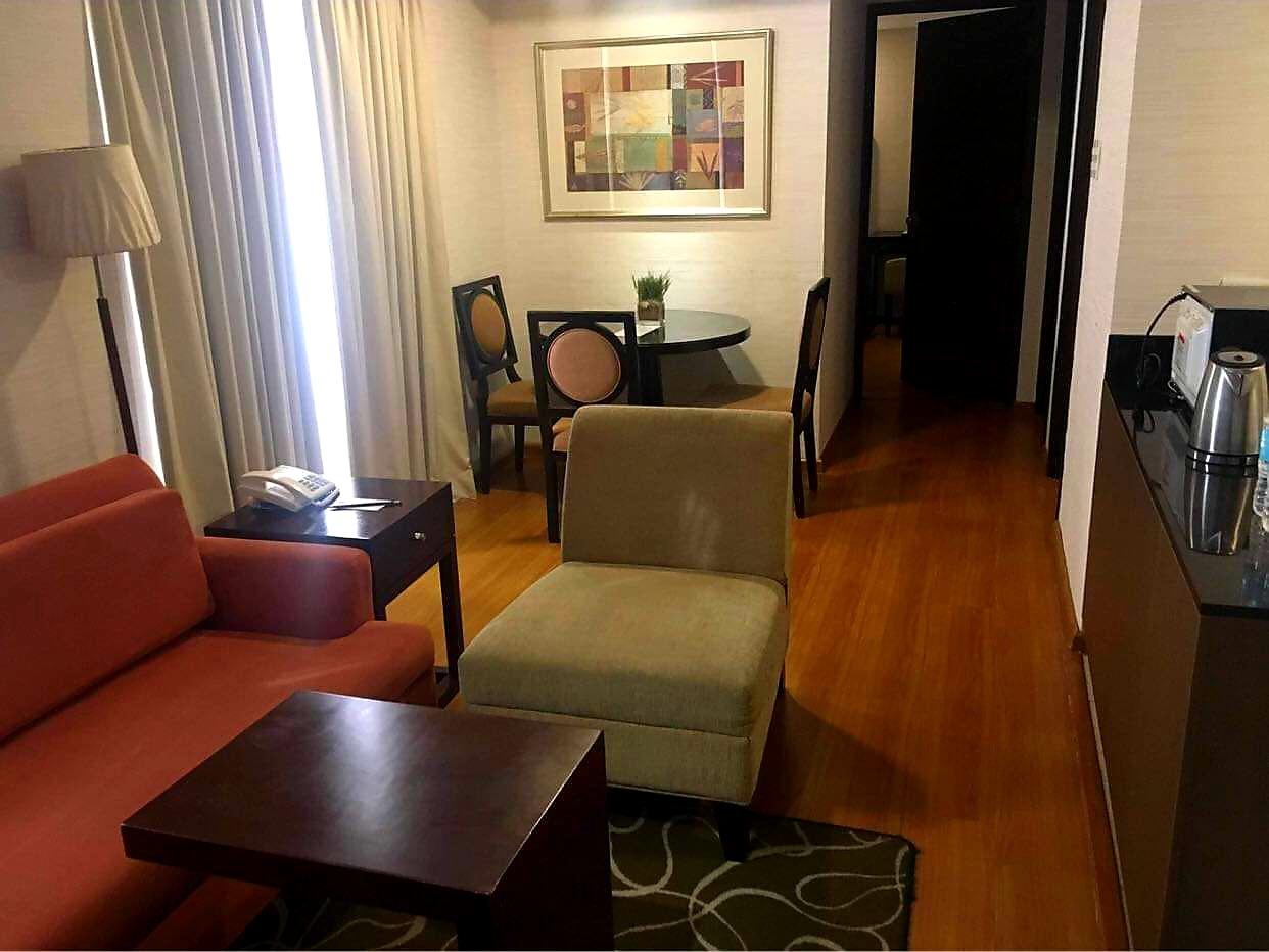 A. Venue is a condo and hotel complex consisting of 3 towers and a total of 44 rooms, each decorated tastefully and given its own personality. It is located beside the mixed use Avenue Entertainment Mall on Makati Avenue, corner Valdez Street which has an array of restaurants covering most aspects of Asian and international cuisine. It is also next door to the modern Century Mall with its basement grocery supermarket. Its resort-like amenities Include a spa, lap pool, kiddie pool, spa pool, coffee shop/restaurant, fully equipped business center, massage and power gym.
