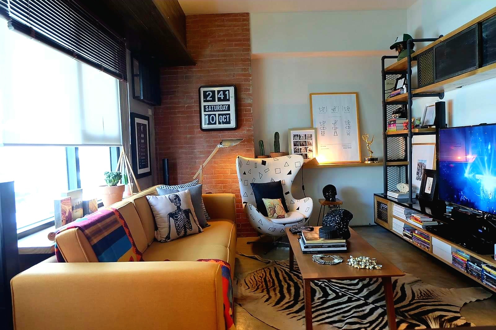 This retro style two bedroom loft apartment is for sale in The Fort Residences, conveniently located along 2nd Avenue, BGC, Taguig