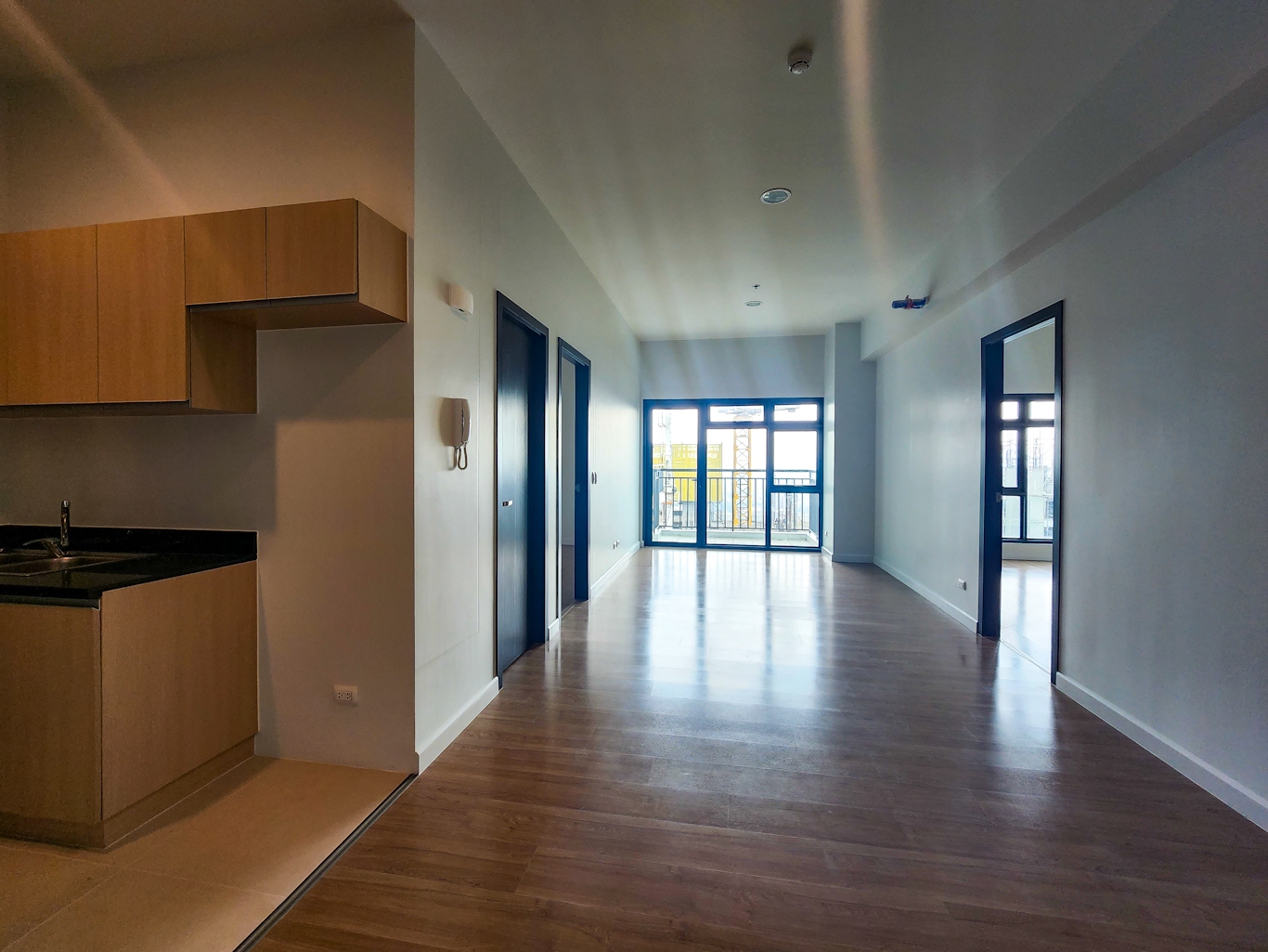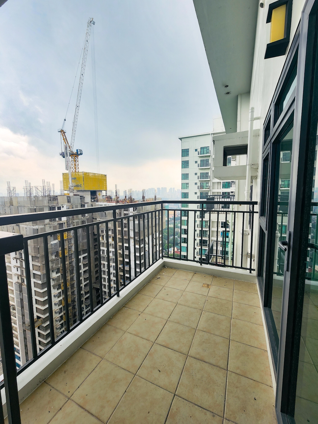 Spacious living area has access to the balcony overlooking the view to Makati skyline