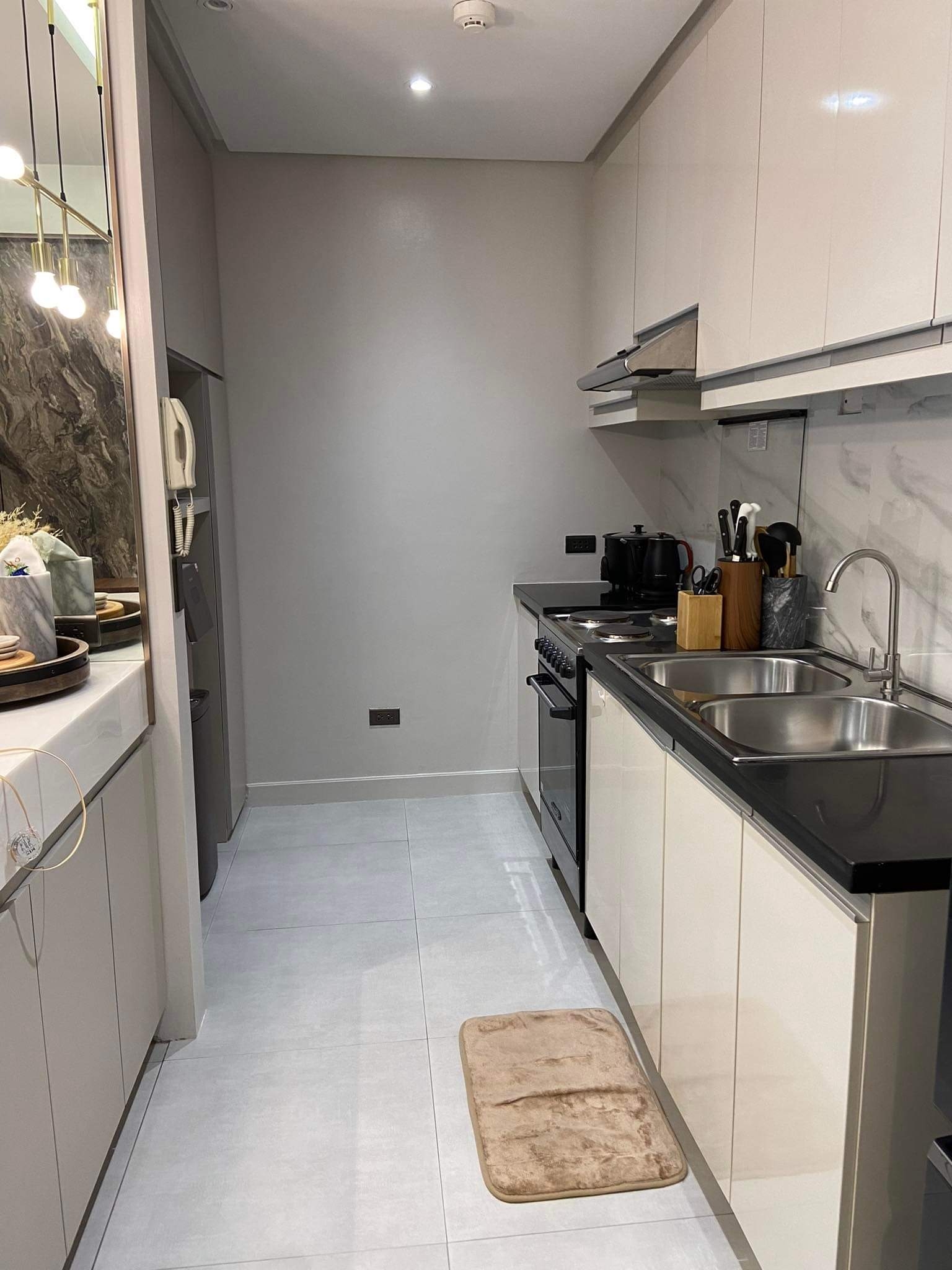 This modern one bedroom condominium unit is available for rent at La Vie Flats, conveniently located close to the prestigious Palms Country Club and Festival Mall, in the center of Alabang