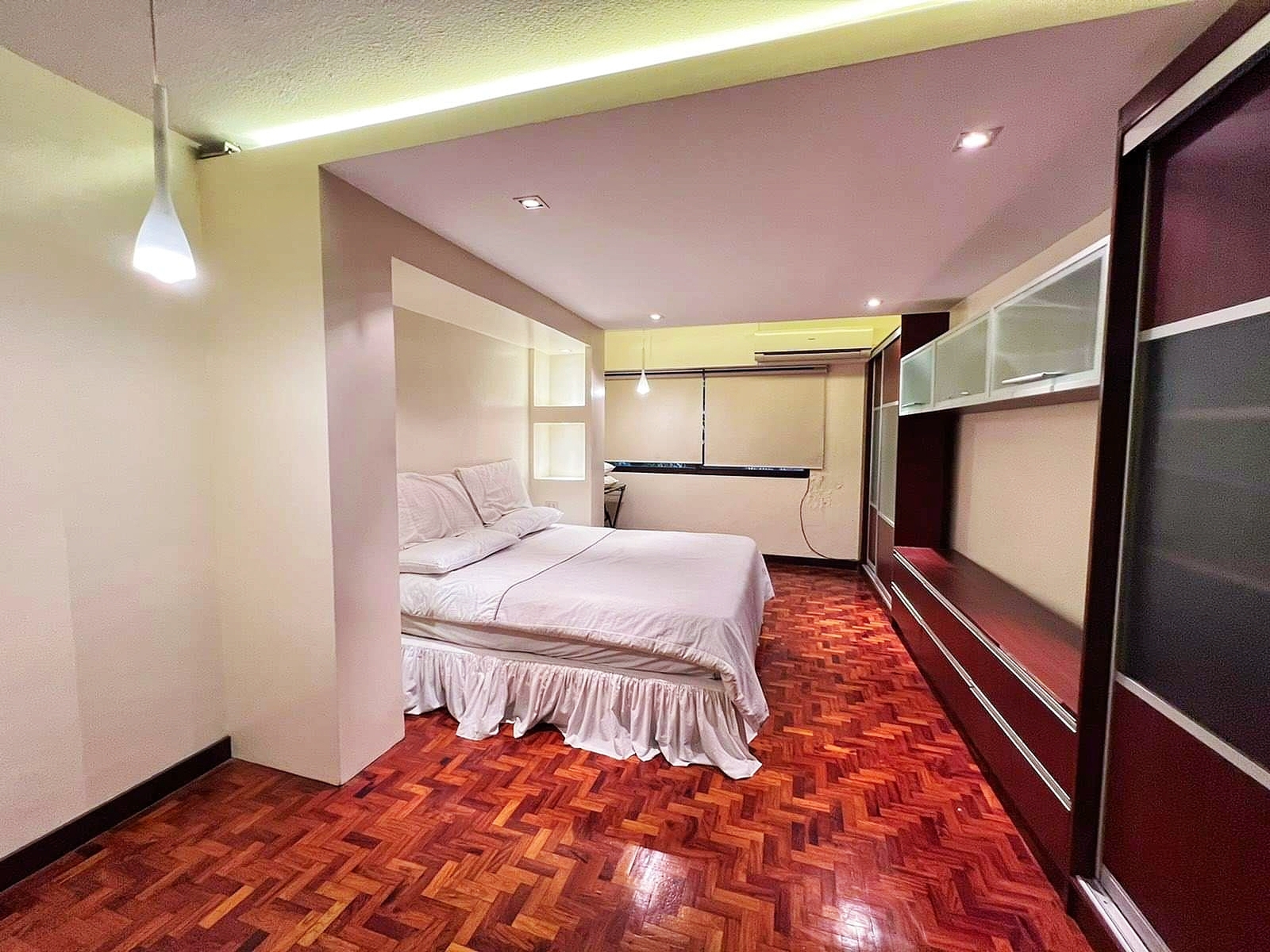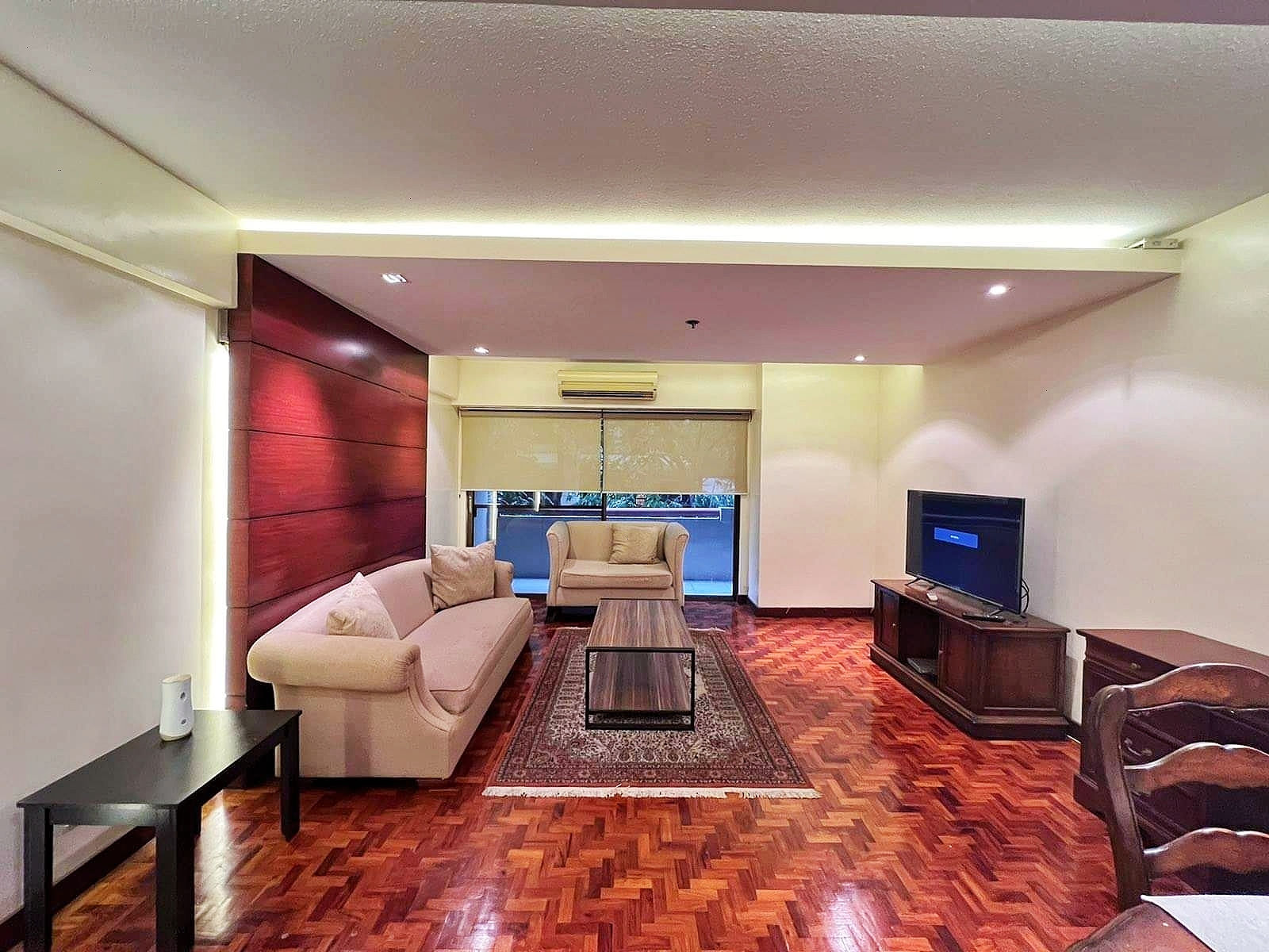 This spacious two bedroom condominium unit is available for rent in Sunrise Terraces located in the heart of Legaspi Village, Makati