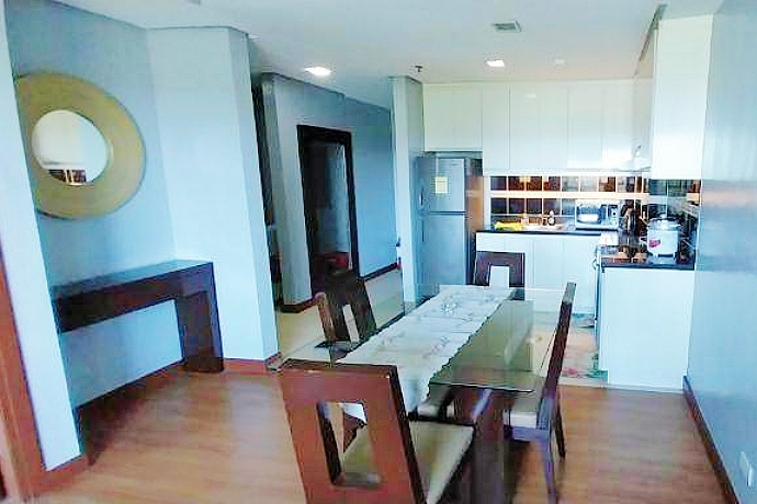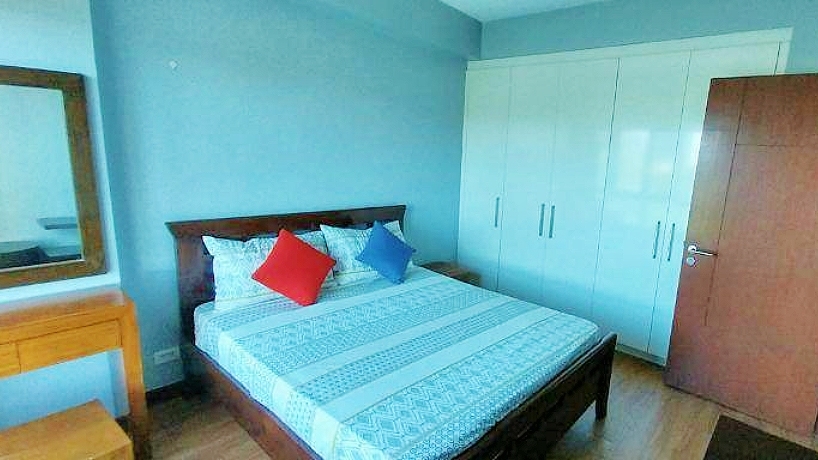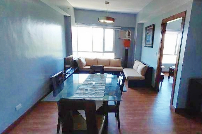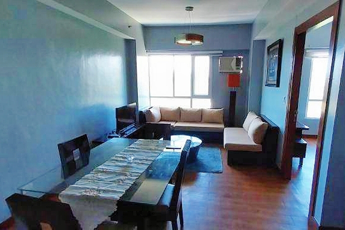This well-maintained one bedroom condominium unit is available for rent at La Vie Flats, conveniently located close to the prestigious Palms Country Club and Festival Mall, in the center of Alabang