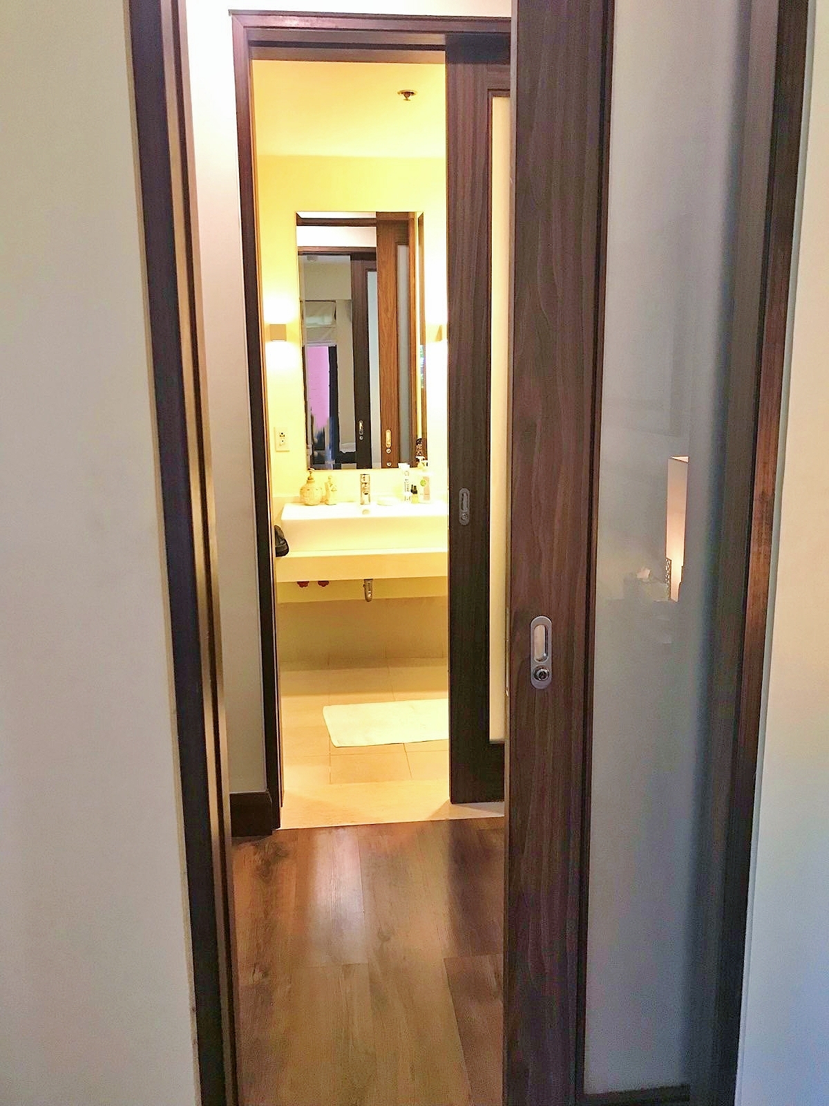 Floor to ceiling sliding doors make this a bright apartment throughout
