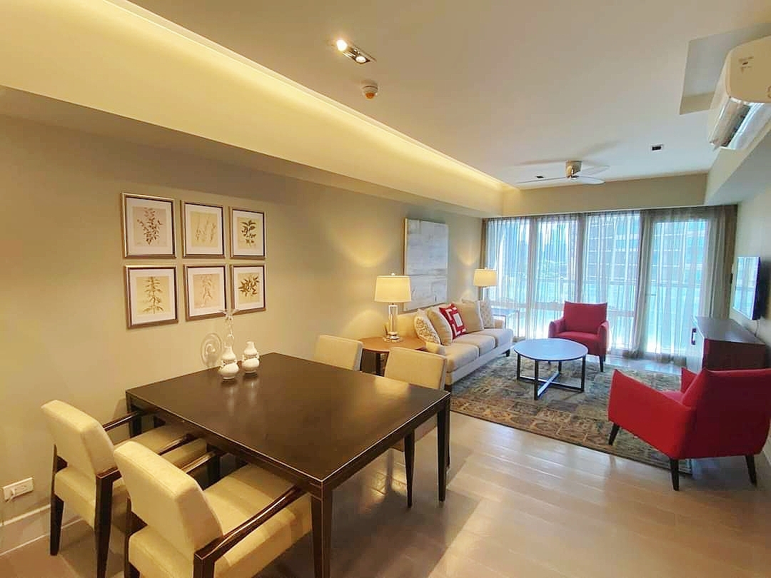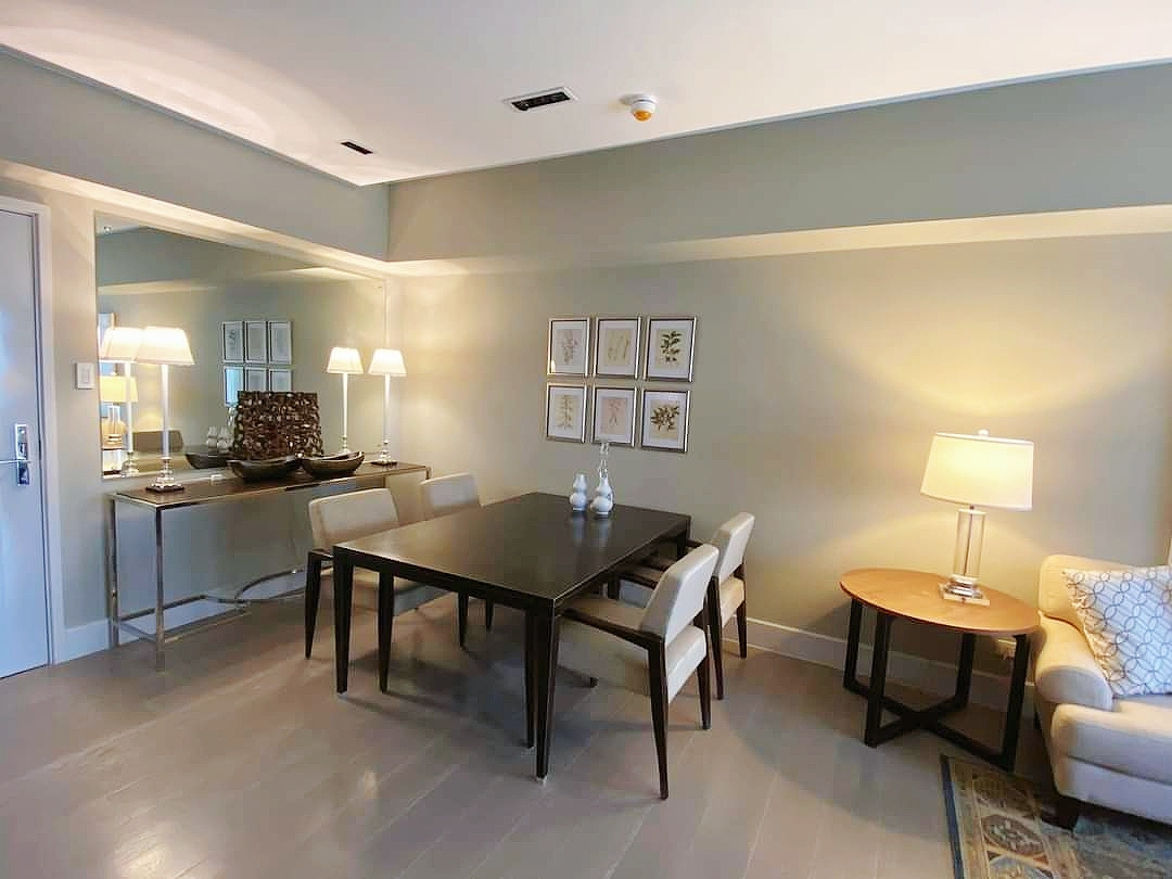 Elegantly furnished two bedroom condominium for rent in Lorraine Tower, one of the five uniquely designed residential towers developed by the Rockwell Land Corporation, next to the surrounding business districts and commercial centers of Makati City