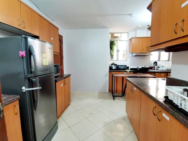 Separate fitted kitchen equipped with all major appliances such as 4-burner vitro ceramic cook top, rangehood, 2-door inverter refrigerator, microwave oven, oven toaster and rice cooker