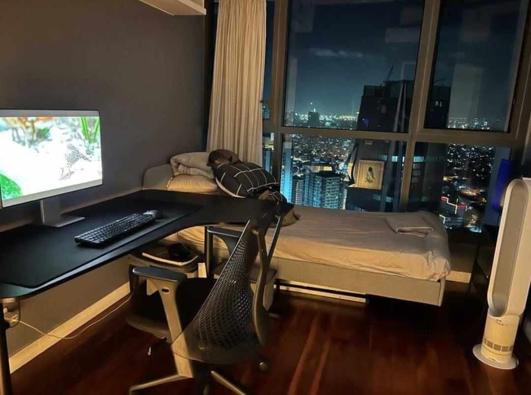 Second bedroom has a single bed, a bladeless electric fan, a desktop computer, study table and a chair