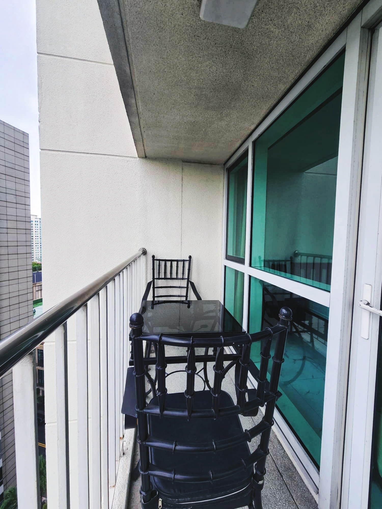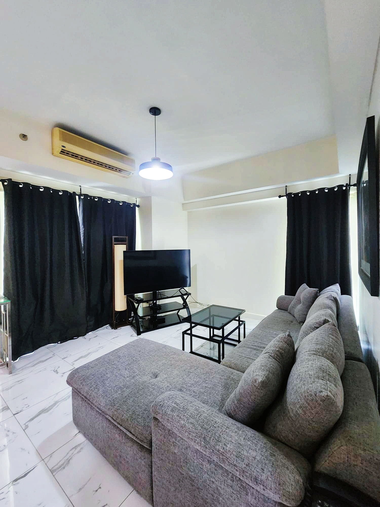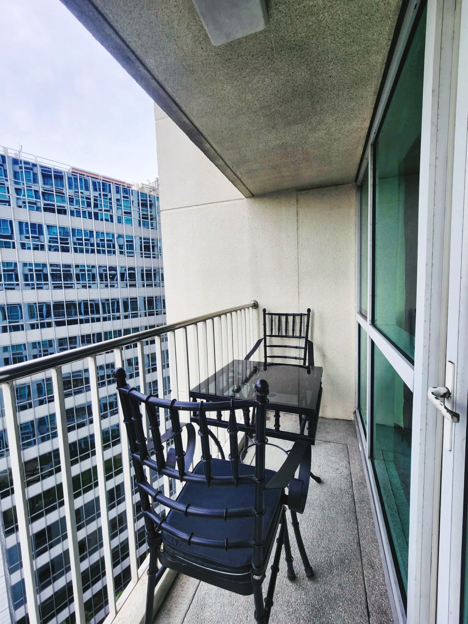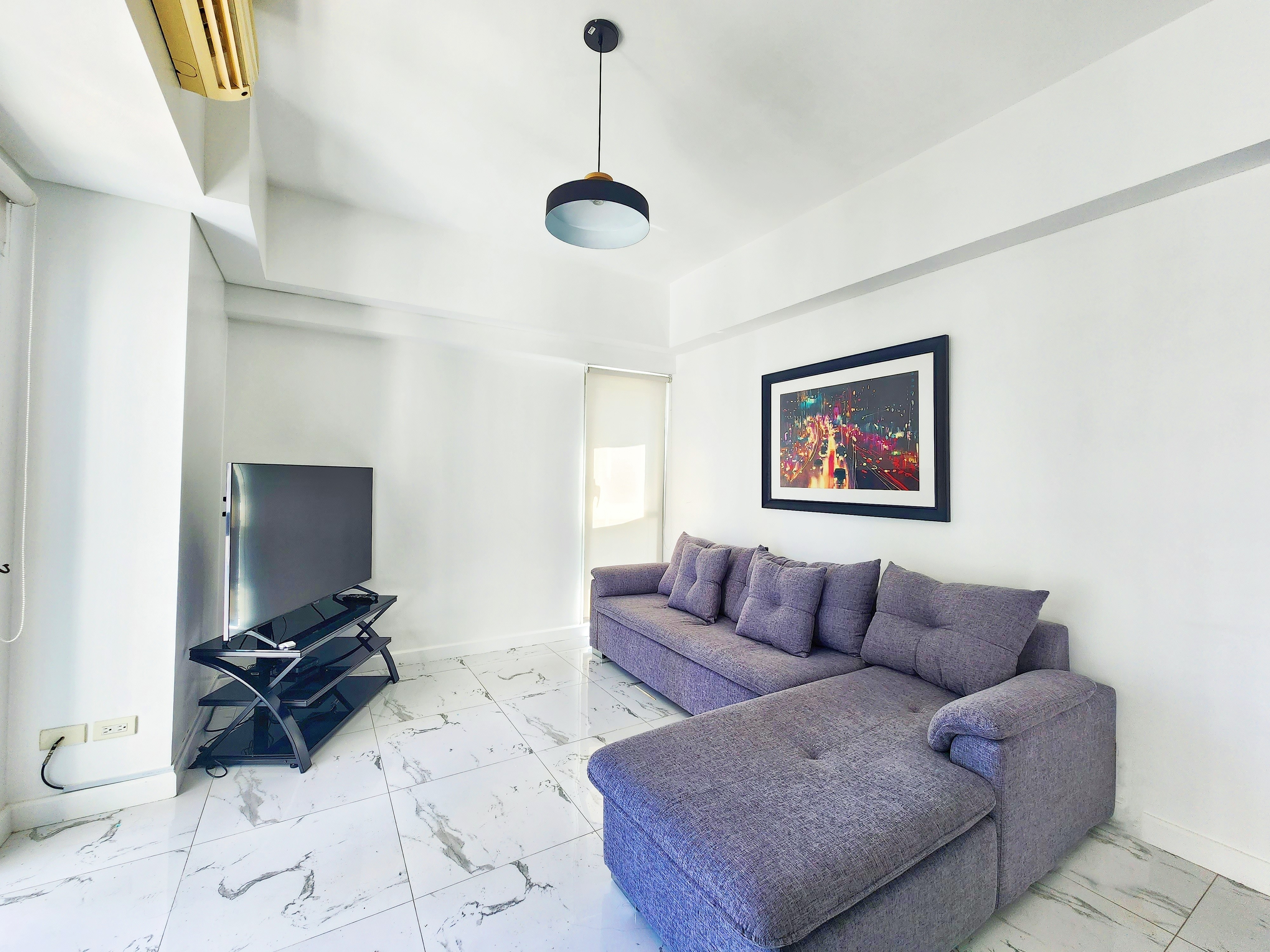 The living room is bright and airy and the bedroom enjoys a balcony overlooking the Makati Skyline