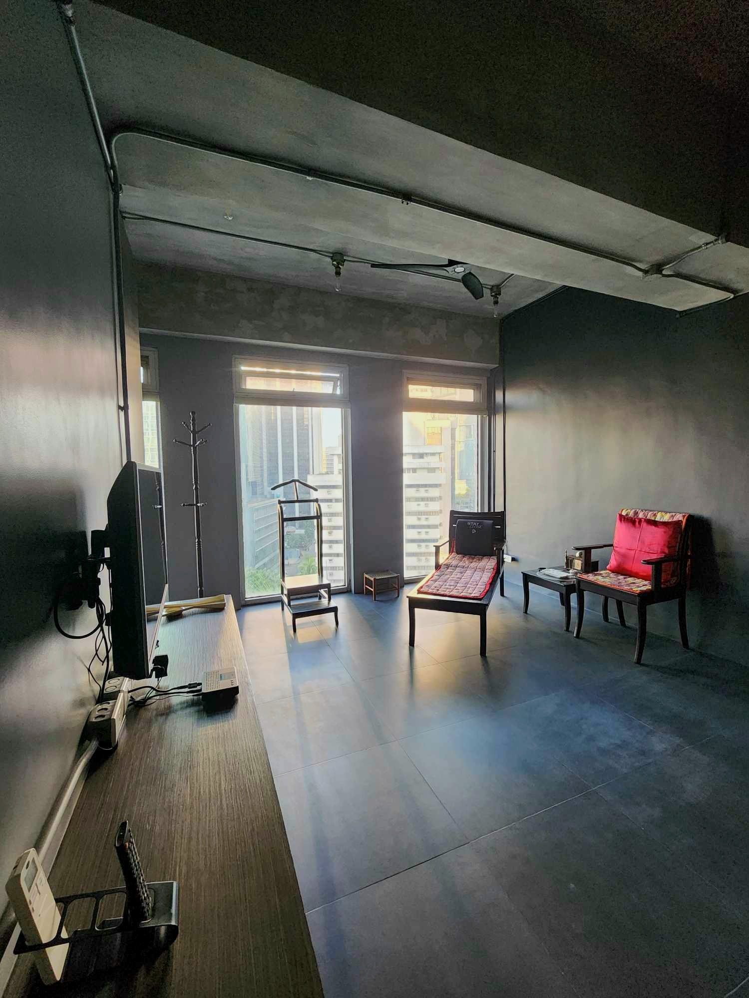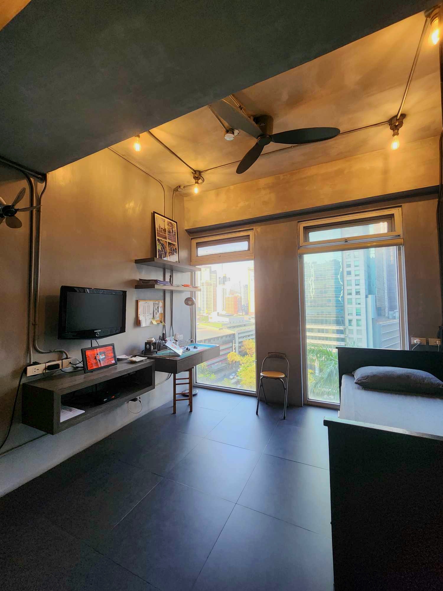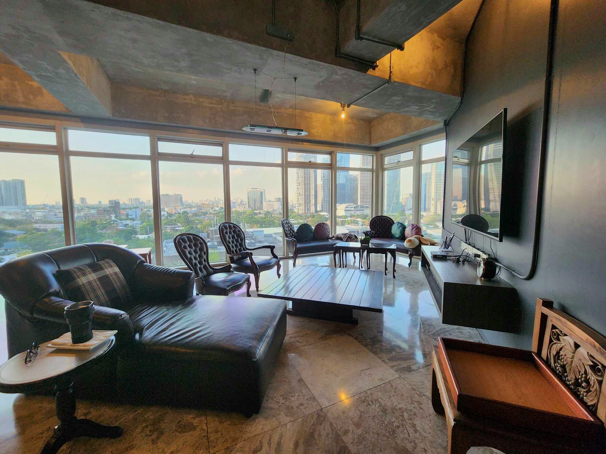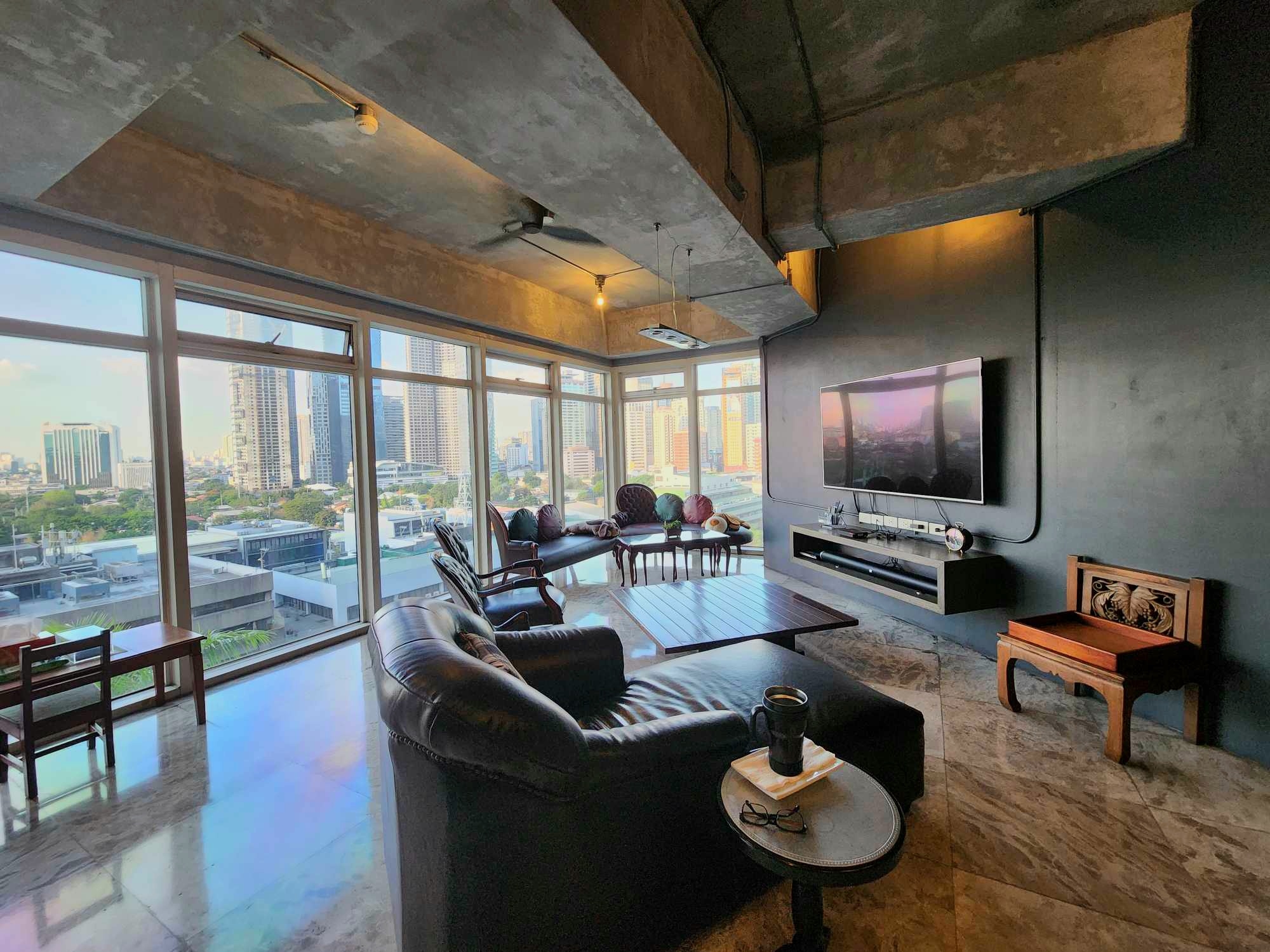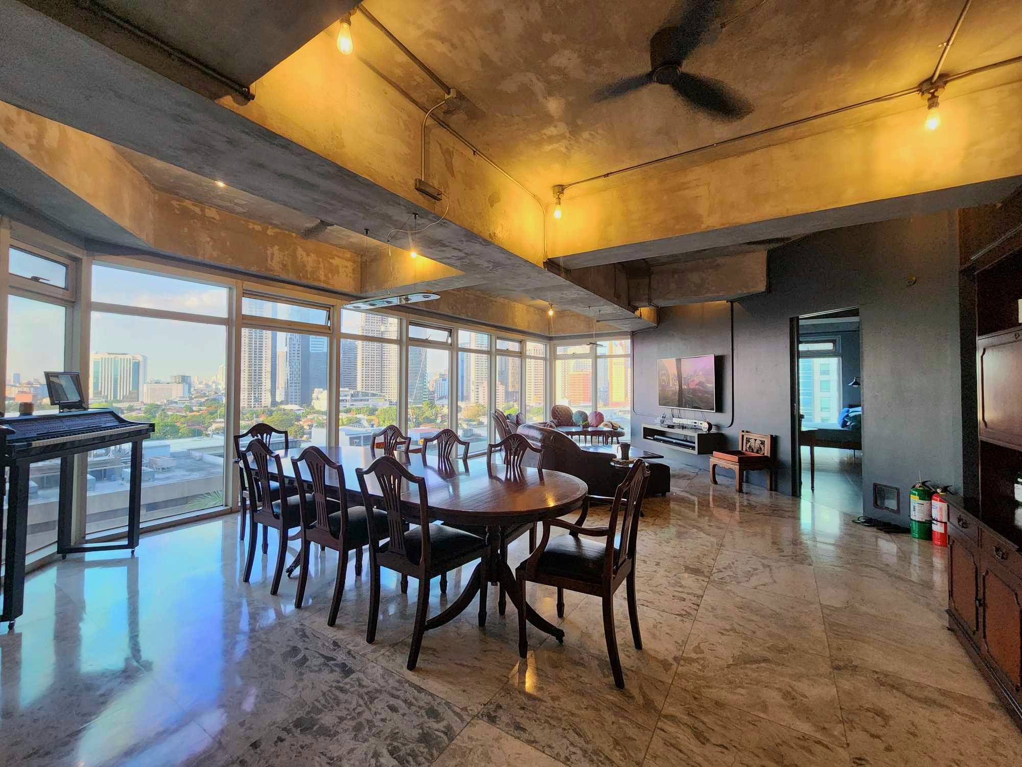 This modern four bedroom condominium interior designed in an industrial style is available for sale in Salcedo Park Tower 1