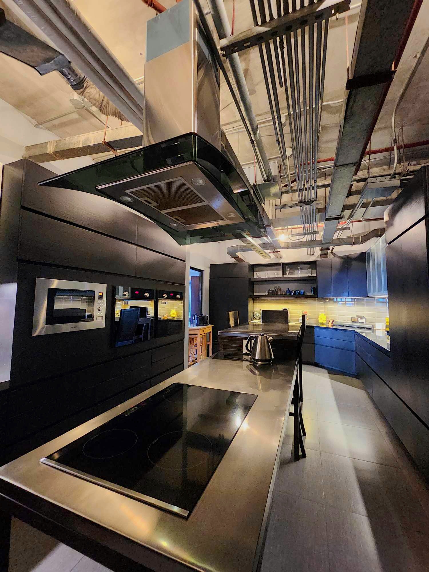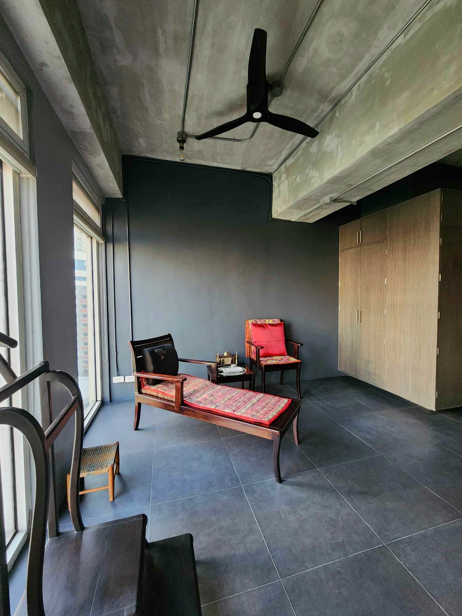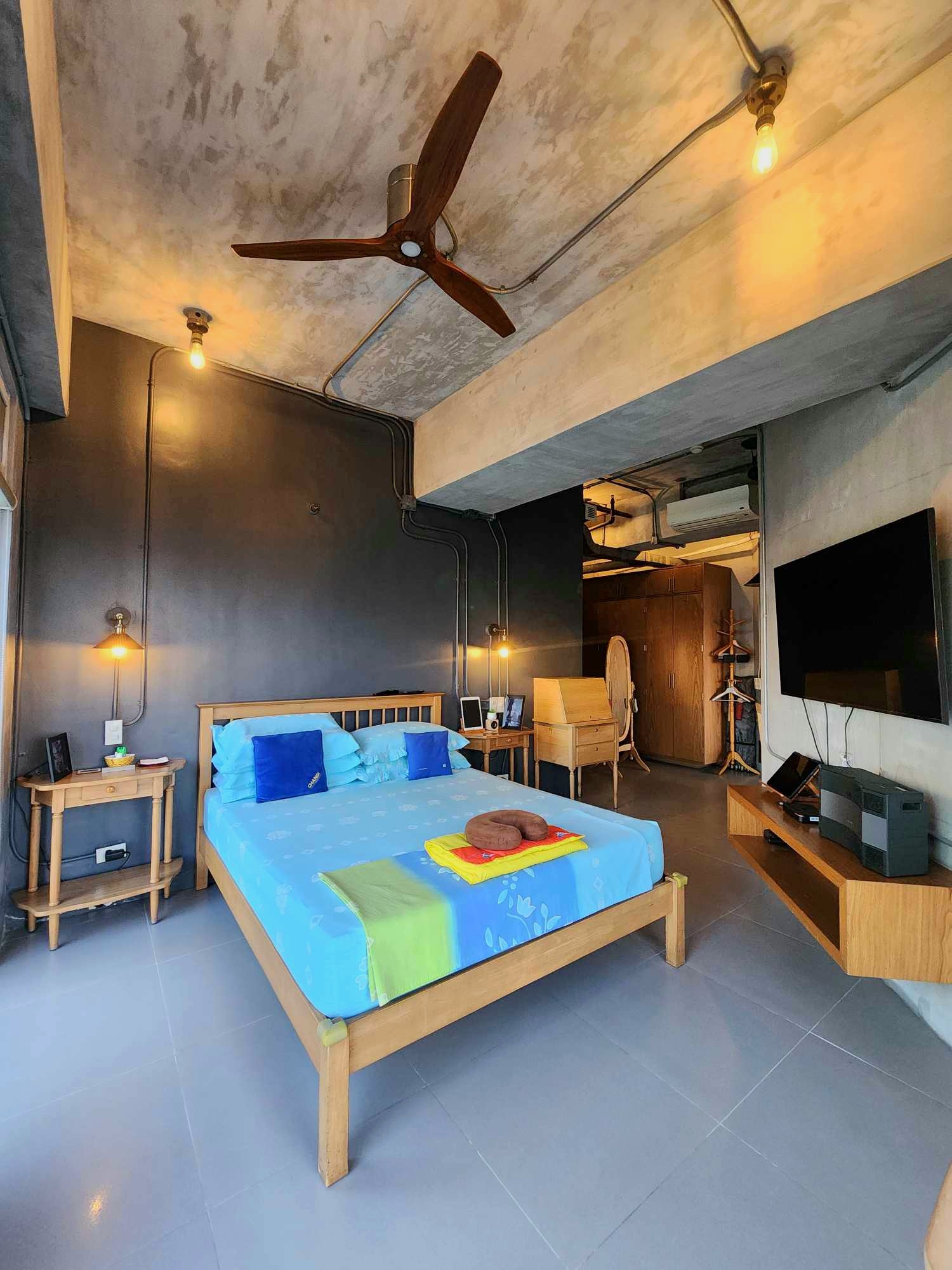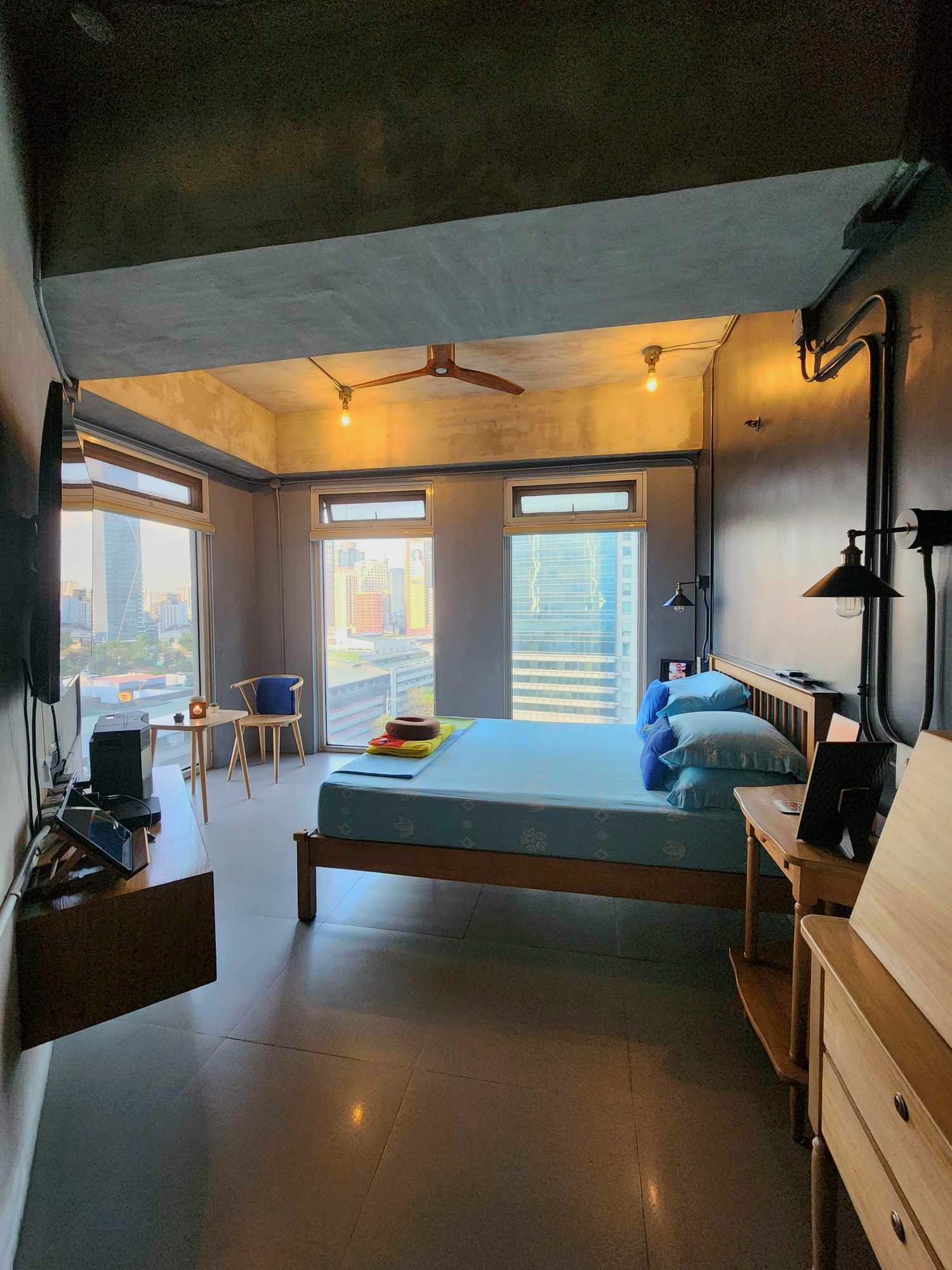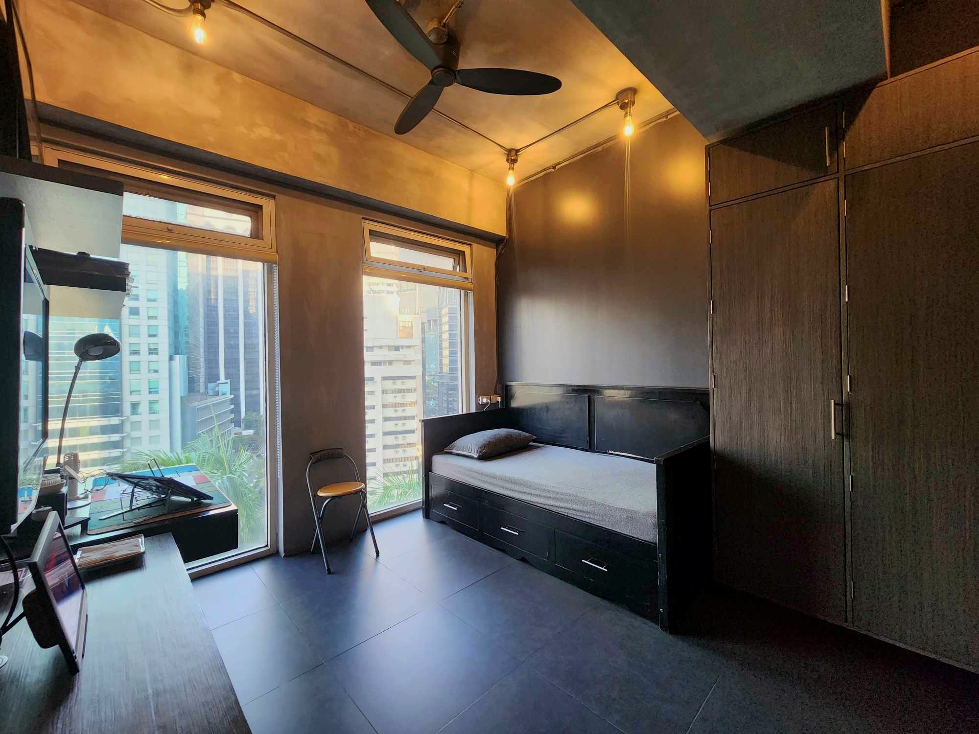 This modern four bedroom condominium interior designed in an industrial style is available for sale in Salcedo Park Tower 1