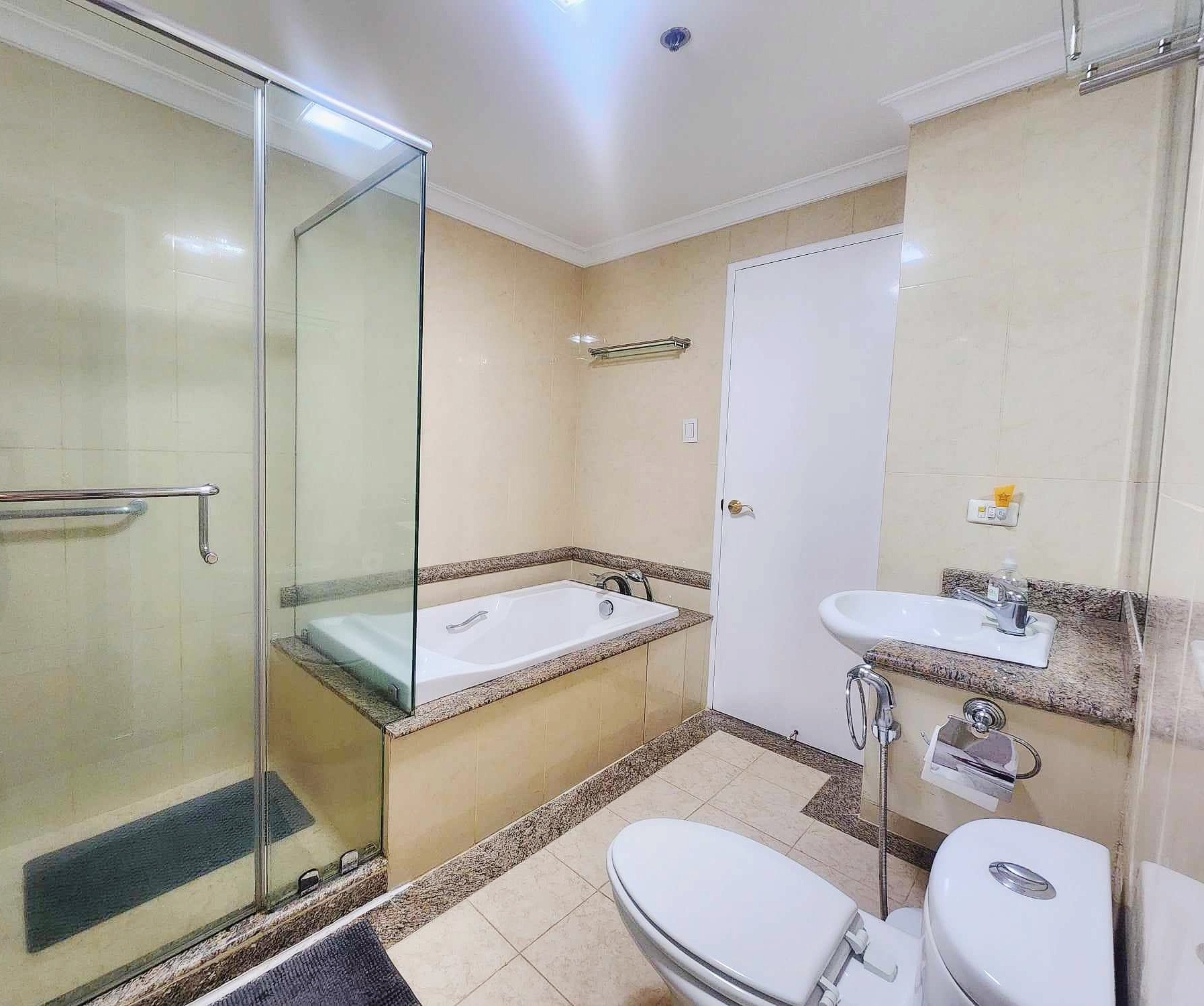 This spacious one bedroom condominium is for sale in the exclusive Shang Grand Tower, conveniently located close to the Greenbelt shopping and entertainment complexes on Perea Street, corner Dela Rosa Street