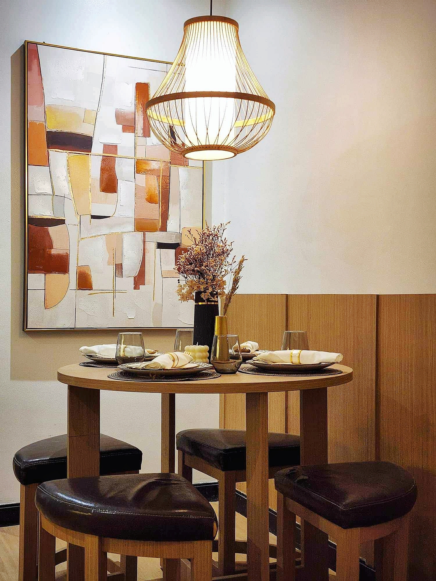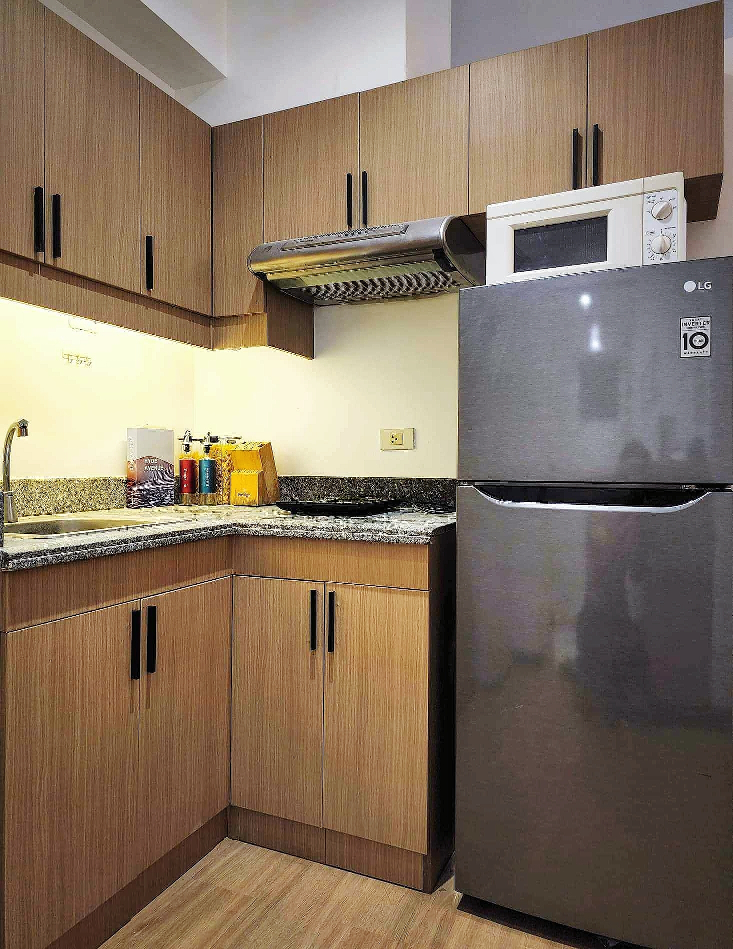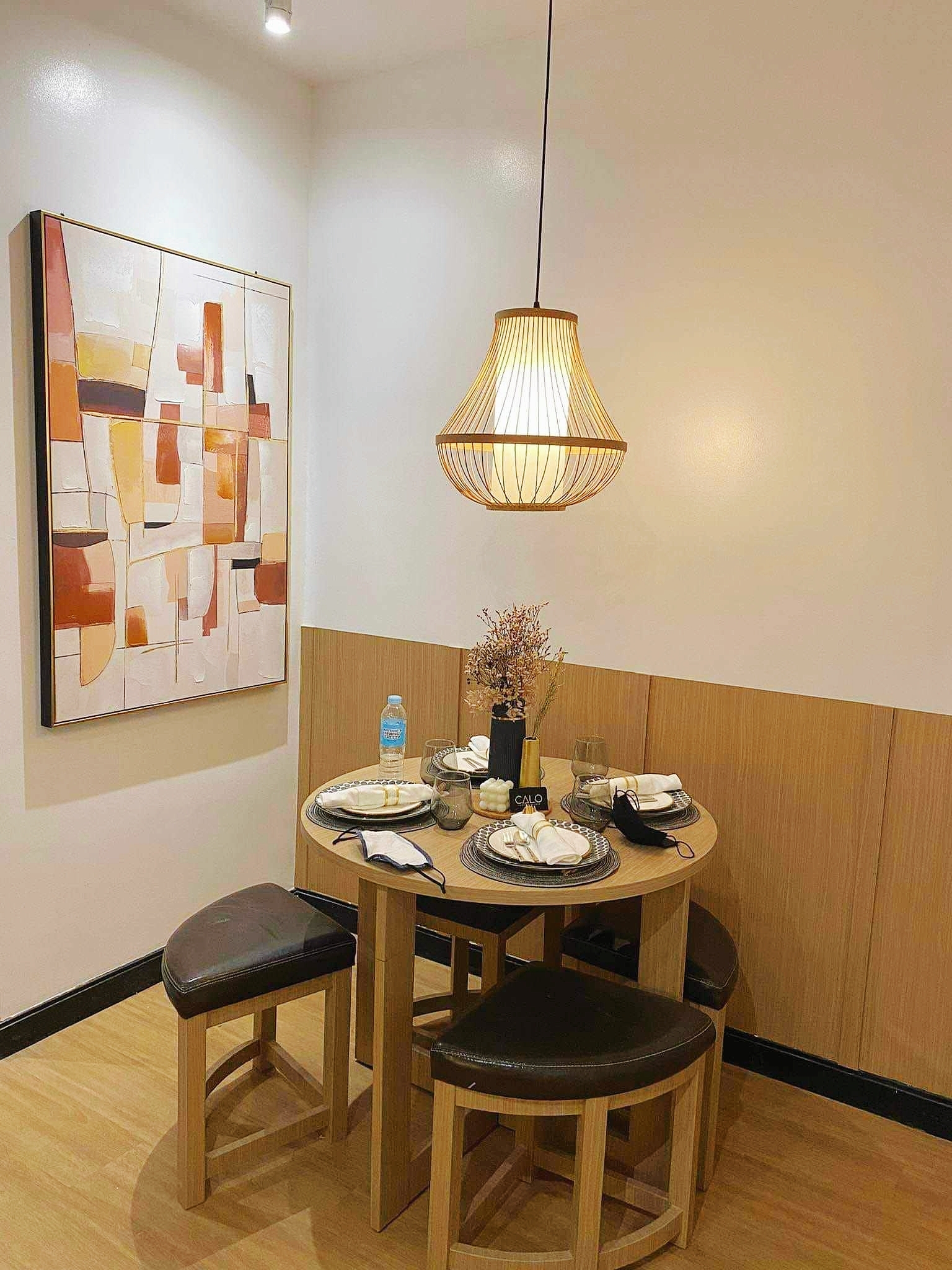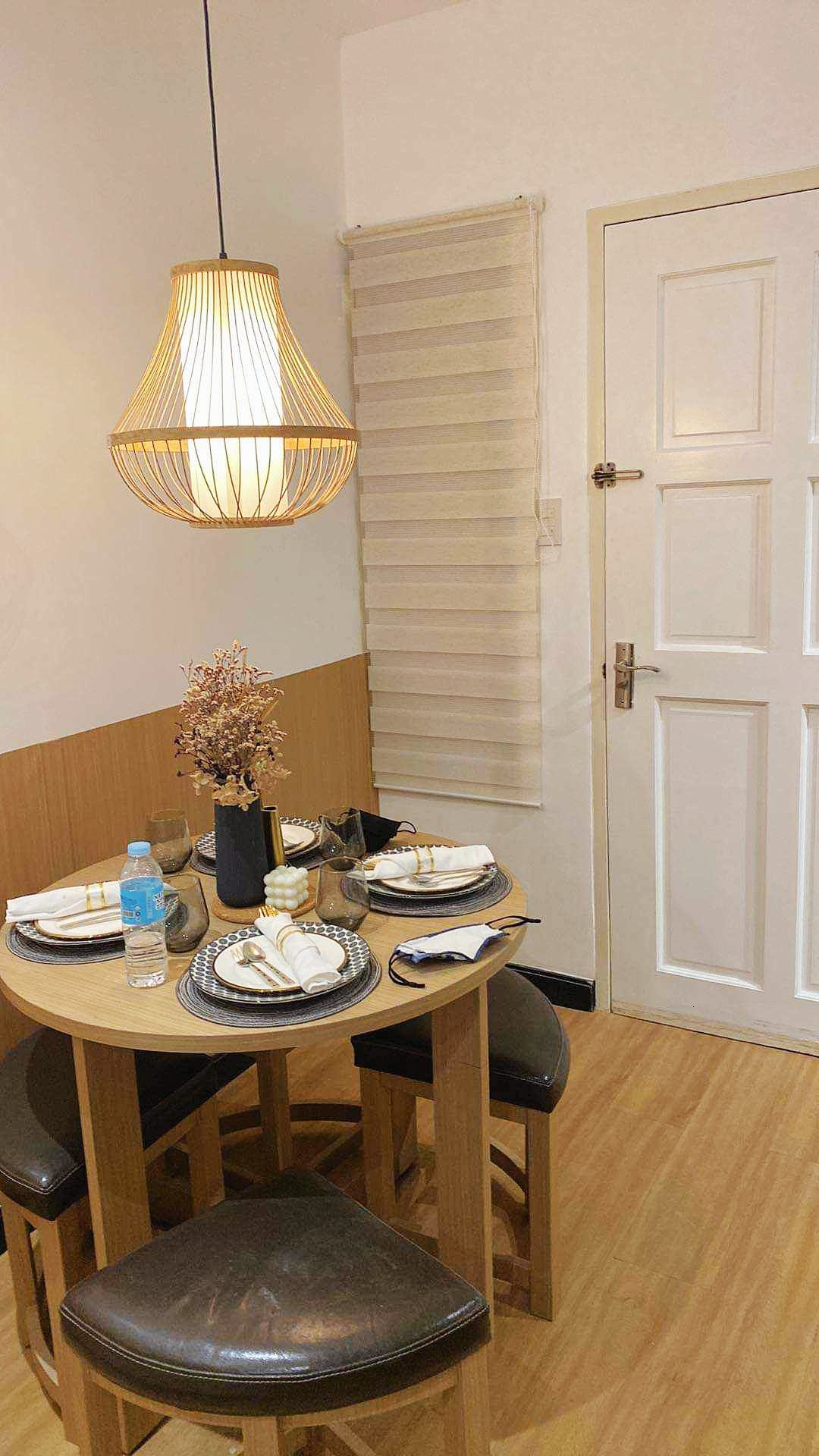 Complete with a queen size bed, wall-mounted flat-screen TV, shelves, full-length mirror, blackout curtains, cabinet, split type air-conditioning unit and the cozy dining area comfortably seats four