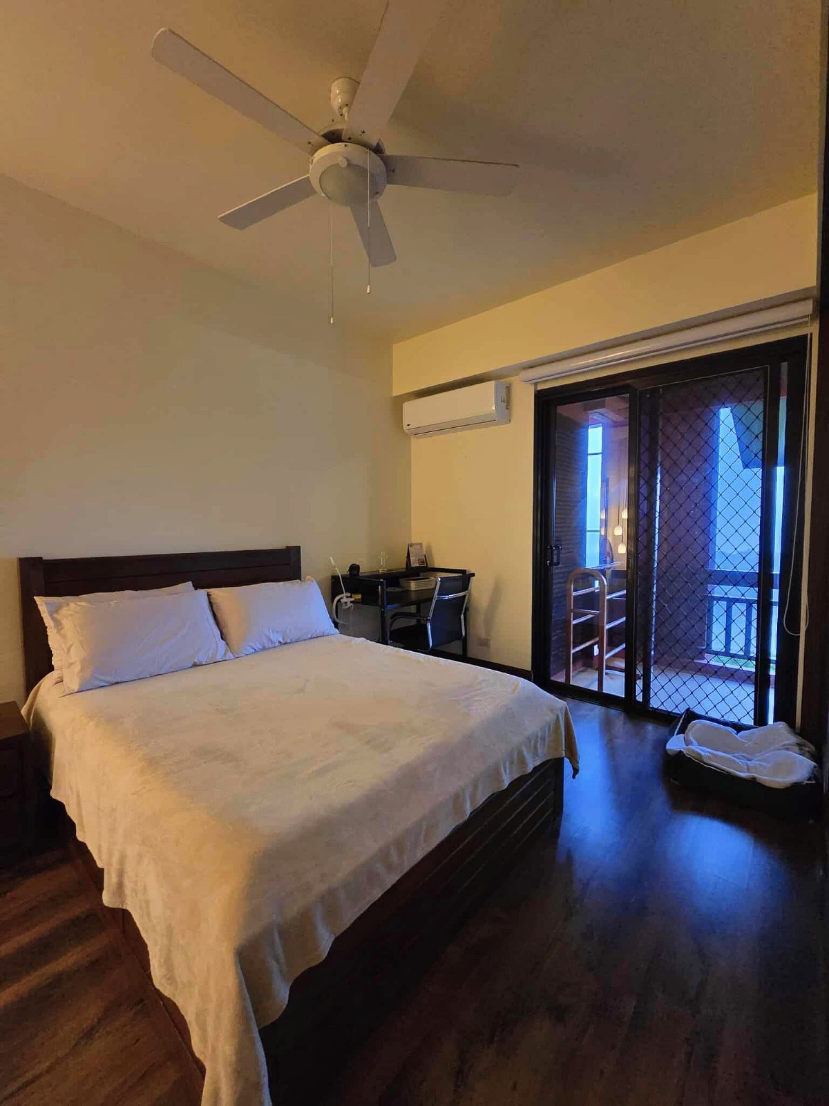 The condo's balcony is accessible from the living room and both bedrooms and provides views of the Bay and the West Philippine Sea