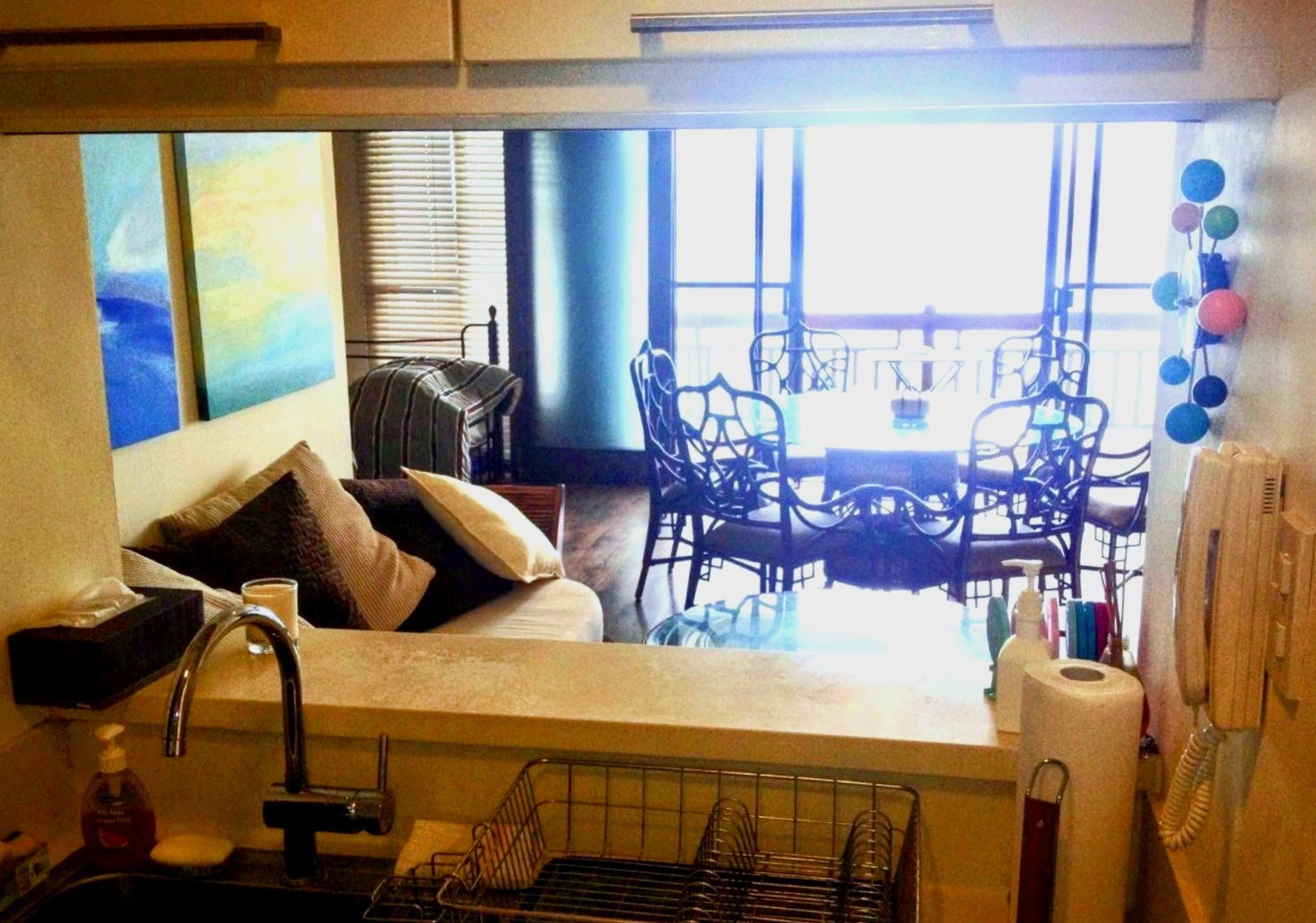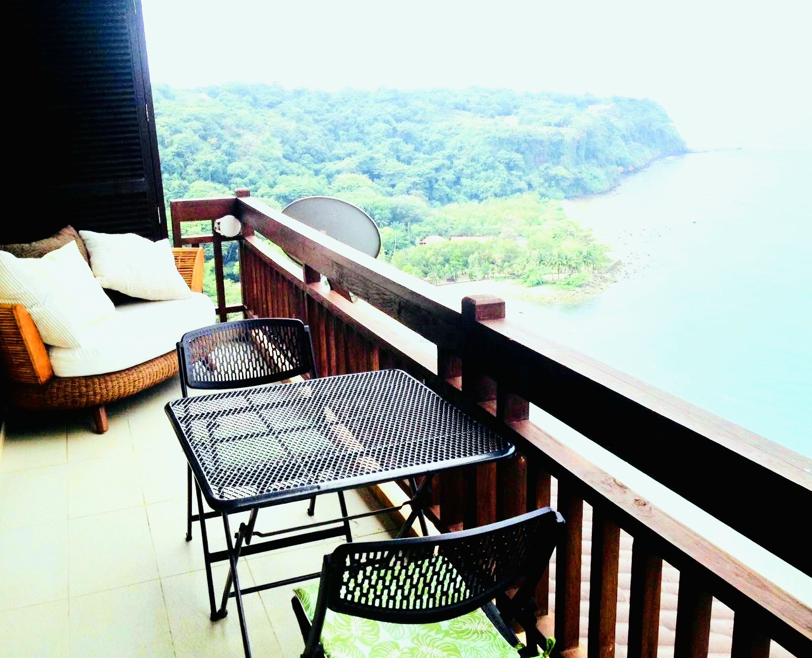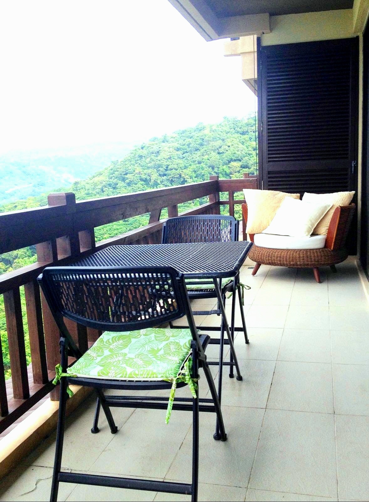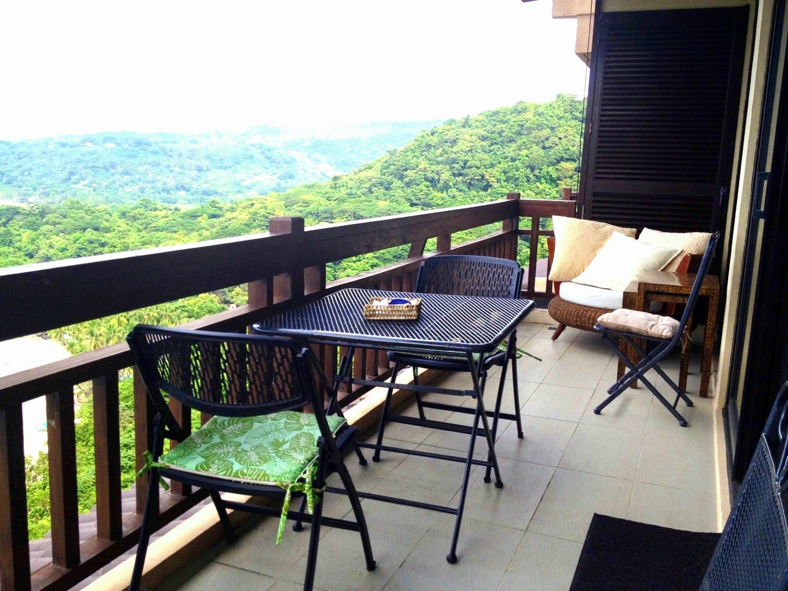 The condo's balcony is accessible from the living room and both bedrooms and provides views of the Bay and the West Philippine Sea