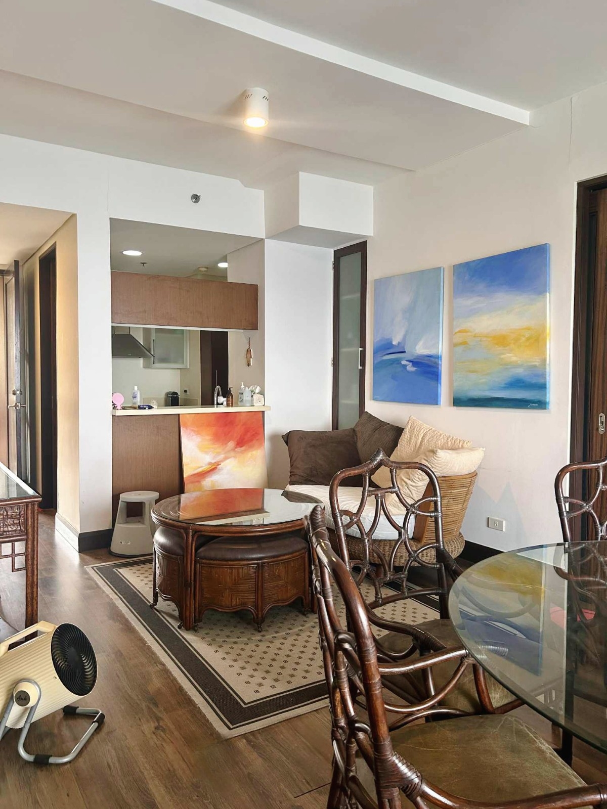 Living area has a sofa set and the adjoining dining area accommodates up to 6 people