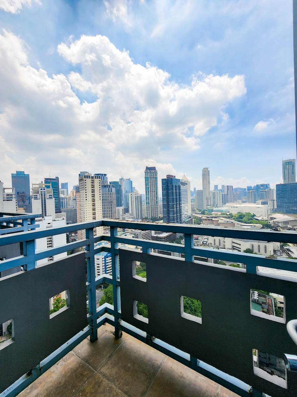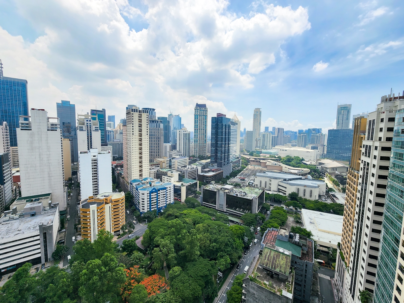 Living area has access to the balcony with panoramic views of the Makati City skyline