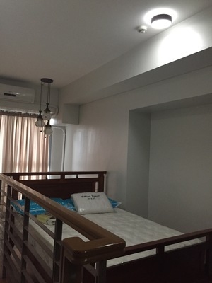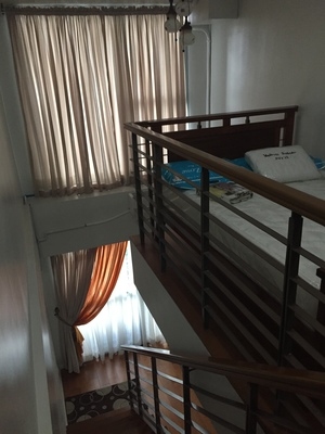 This charming loft style one bedroom condominium is available for sale in Eton Residences, conveniently located across from Greenbelt 1 Mall in the heart of Legaspi Village, Makati City