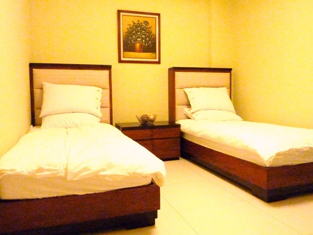 Second bedroom contains twin beds