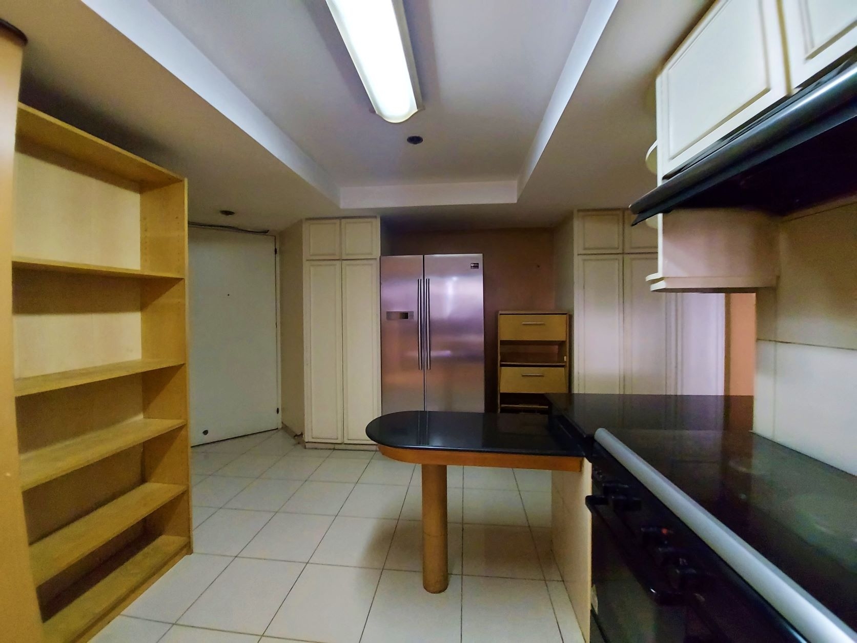 Separate kitchen is equipped with a two door refrigerator, four burner stove with oven and range hood, decent maids room with separate utility area