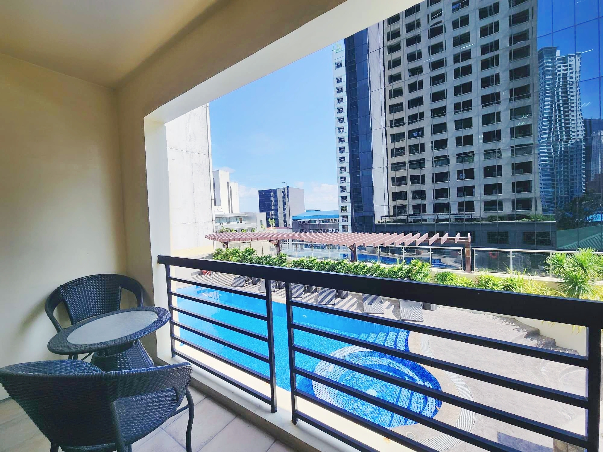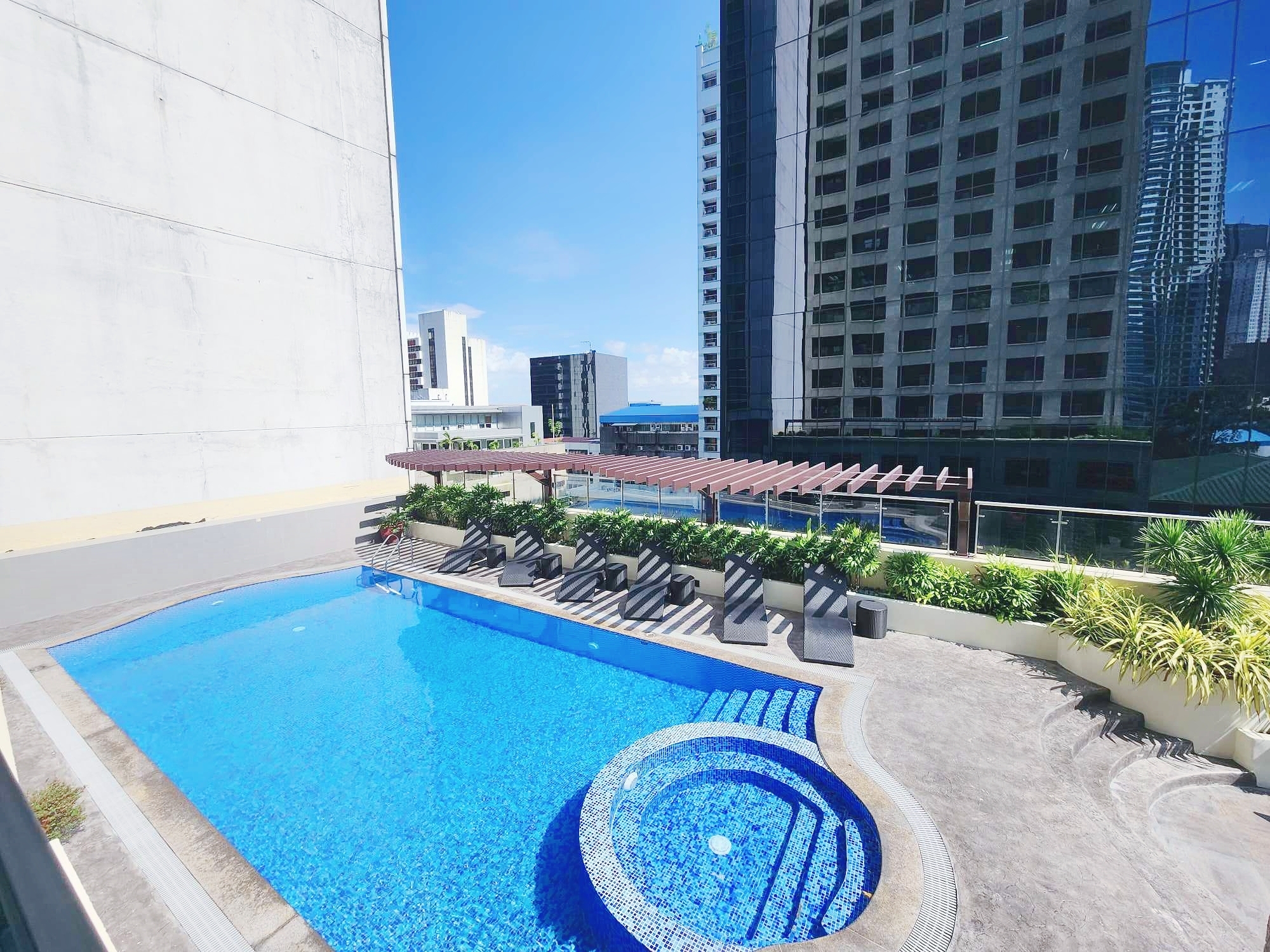 Greenbelt Radissons is a 31-storey building of neo-contemporary architecture that towers above Aguirre and Soria streets in Legaspi Village. Established in 2005, Greenbelt Radissons features a range of studio, one and two bedroom condos right in the heart of Makati. Only one block from the fine dining, bars, movie theaters and up-market shopping at Greenbelt, there is real convenience on your doorstep. To meet the demands of city center residents, the amenities include swimming pool, mini gym, shower rooms and function rooms.